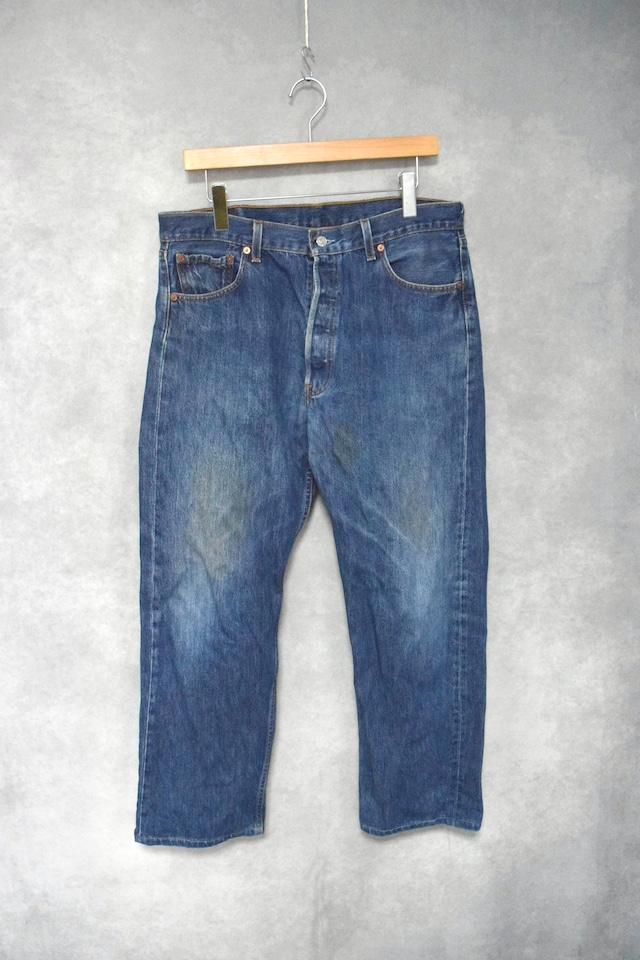 【comment】 リーバイス501デニムパンツ。 年々高騰しつつあるアメリカ製、90年代頃の一本。 手に入れられるうちになアイテムの代表格。 当ブランドのデニムと言えばな品番501。 王道で飽きのこない抜群のデザイン。 幅広いスタイリングで使えるシルエットの名作な品番。 まだまだエイジングを楽しめる具合なインディゴ。 どんどん穿き込んで自分だけのエイジングを是非。 ボタン裏は501刻印。 オールシーズン問わず大活躍できる一本。 足元はスニーカーやブーツなどなんでも合います。 一本目欲しい方も、もう一本欲しい方も◎ お好きな方是非ご検討ください。 【date】 90s 【material】 cotton 100% 【color】 indigo 【size】 size 36 x 30 ウエスト 92cm / 股上 32cm / 股下 72cm / わたり幅 31.5cm / 裾幅 22cm / 全長 100cm 着用者 168cm 痩せ型 【condition】 レングスがお直しされていますが丁寧な縫製が施されています。 両腿辺り、左後ろポケット、右裾付近に薄い汚れがあります。 後ろベルトループ下に軽い擦れがあります。 どれもデニムならではの格好良い雰囲気として考えていただけるものと思います。 【notice】 ※ユーズド商品ですので、神経質な方はご遠慮ください。 ※見落としなどの汚れやダメージがある場合もありますのでご理解下さい。 ※なるべく現物と同じ色味になるようにしていますが、写真と状態や色味が多少異なる場合もございます。 ※返品、交換は対応できません。予めご了承ください。
