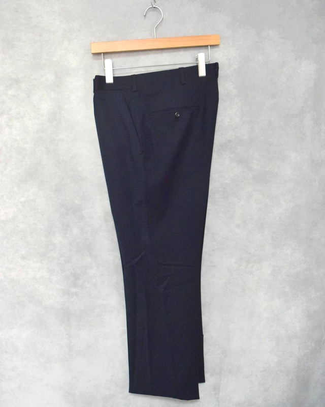 【comment】 60年代頃のニーマンマーカスのウールフランネルワンタックスラックス。 生地は柔らかなウールフランネル地。 心地良い肌触りで快適な着用感。 腰回りはワンタック。 程良くゆとりある腿周りから裾にかけて緩やかなテーパードがかかります。 着用時のシルエットの美しさ◎ さすが高級百貨店が仕立てた1本だなと。 ポケット縁とフロントジップを覆う部分にはハンドステッチが施されています。 細かなディテールからもこだわりが見えますね。 お色味はダークネイビー。 合わせるトップスの色を選ばない優秀な配色。 クオリティ、シルエットともに良い古いウールトラウザーズ。 これからの時期に引っ張りだこな1本かと。 お好きな方是非ご検討ください。 【date】 60s 【material】 wool 【color】 dark navy 【size】 size 33 x 29 ウエスト 85cm / 股上 31cm / 股下 73cm / わたり幅 30cm / 裾幅 23.5cm / 全長 99.5cm 着用者 168cm 痩せ型 【condition】 レングスがお直しされていますが丁寧な縫製が施されています。 その他は程良い着用感がございます。 【notice】 ※ユーズド商品ですので、神経質な方はご遠慮ください。 ※見落としなどの汚れやダメージがある場合もありますのでご理解下さい。 ※なるべく現物と同じ色味になるようにしていますが、写真と状態や色味が多少異なる場合もございます。 ※レターパックライトを選択頂く場合は損害補償がないことをあらかじめご了承ください。また、コワレモノ扱いができないためシルバーの場合変形する可能性がある点もご了承ください。 ※返品、交換は対応できません。予めご了承ください。
