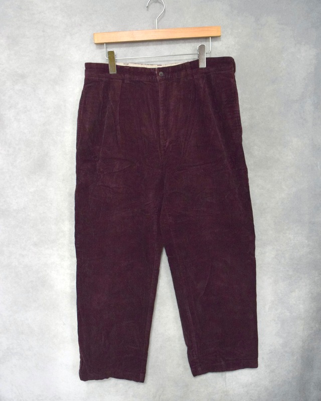 【comment】 90〜00年代ごろのラルフローレン。 アンドリューパンツと呼ばれるモデルになります。 ツータックかつインタック仕様のアンドリューパンツ。 シルエットは太もも周りはゆったりで裾に向かって程良いテーパード。 生地は太畝のコーデュロイ。 これからのシーズンにもってこいな季節感のある生地となっております。 また、太畝コーデュロイでは赤紫のような色味。 暗くなりがちな今時期のトップス類、こういった色味のパンツがあるとかなり重宝します。 お好きな方是非ご検討ください。 【date】 90s 〜 00s 【material】 wide wall corduroy ( cotton 100% ) 【color】 red purple 【size】 34 x 29 ウエスト 86cm / 股上 32cm / 股下 71cm / わたり幅 34cm / 裾幅 23cm / 全長 100cm 着用者 171cm普通体型 【condition】 程良い着用感があります。 【notice】 ※ユーズド商品ですので、神経質な方はご遠慮ください。 ※見落としなどの汚れやダメージがある場合もありますのでご理解下さい。 ※なるべく現物と同じ色味になるようにしていますが、写真と状態や色味が多少異なる場合もございます。 ※レターパックライトを選択頂く場合は損害補償がないことをあらかじめご了承ください。また、コワレモノ扱いができないためシルバーの場合変形する可能性がある点もご了承ください。 ※返品、交換は対応できません。予めご了承ください。