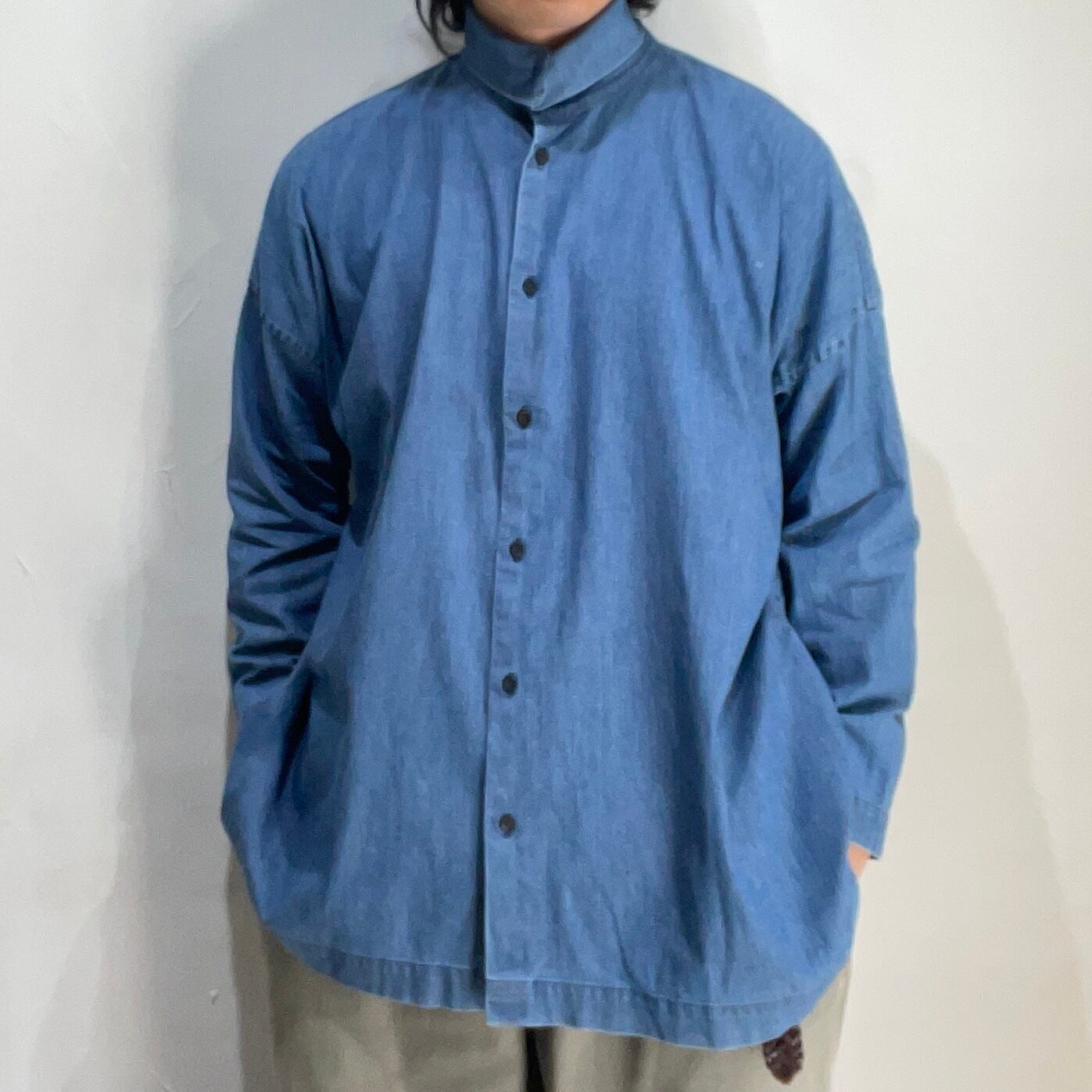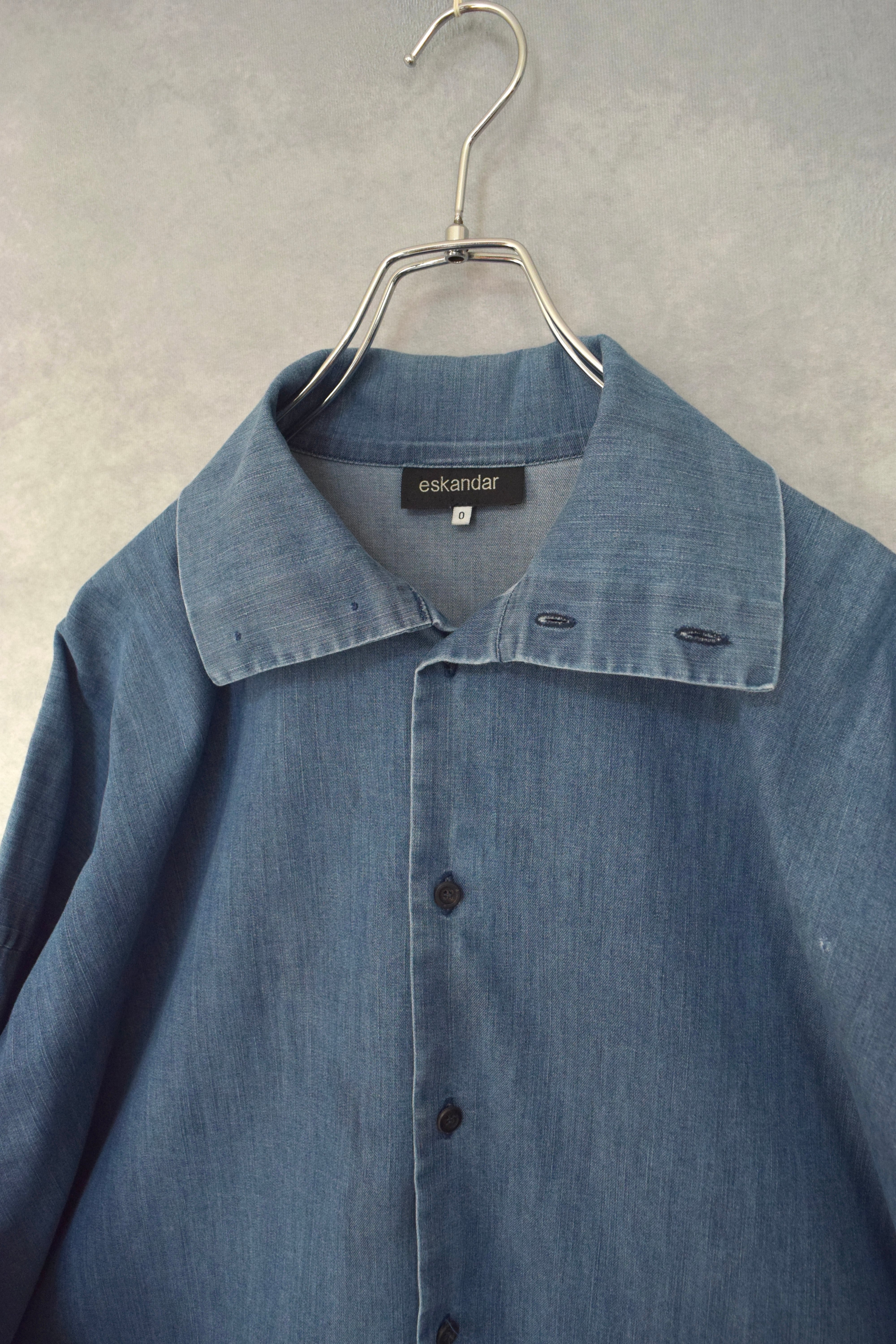 " eskandar " indigo cotton turtle neck shirt / made in E.U