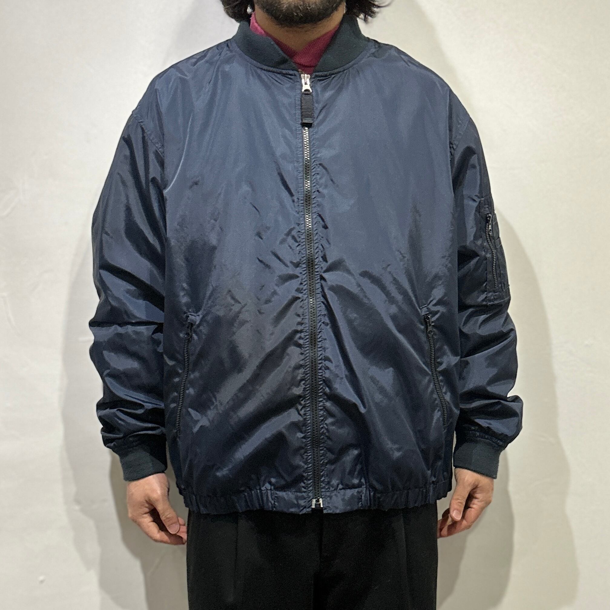 撥水性の高い硬めのナイロンシェルに杢グレーのカットソー生地を裏に張ったMA-1。