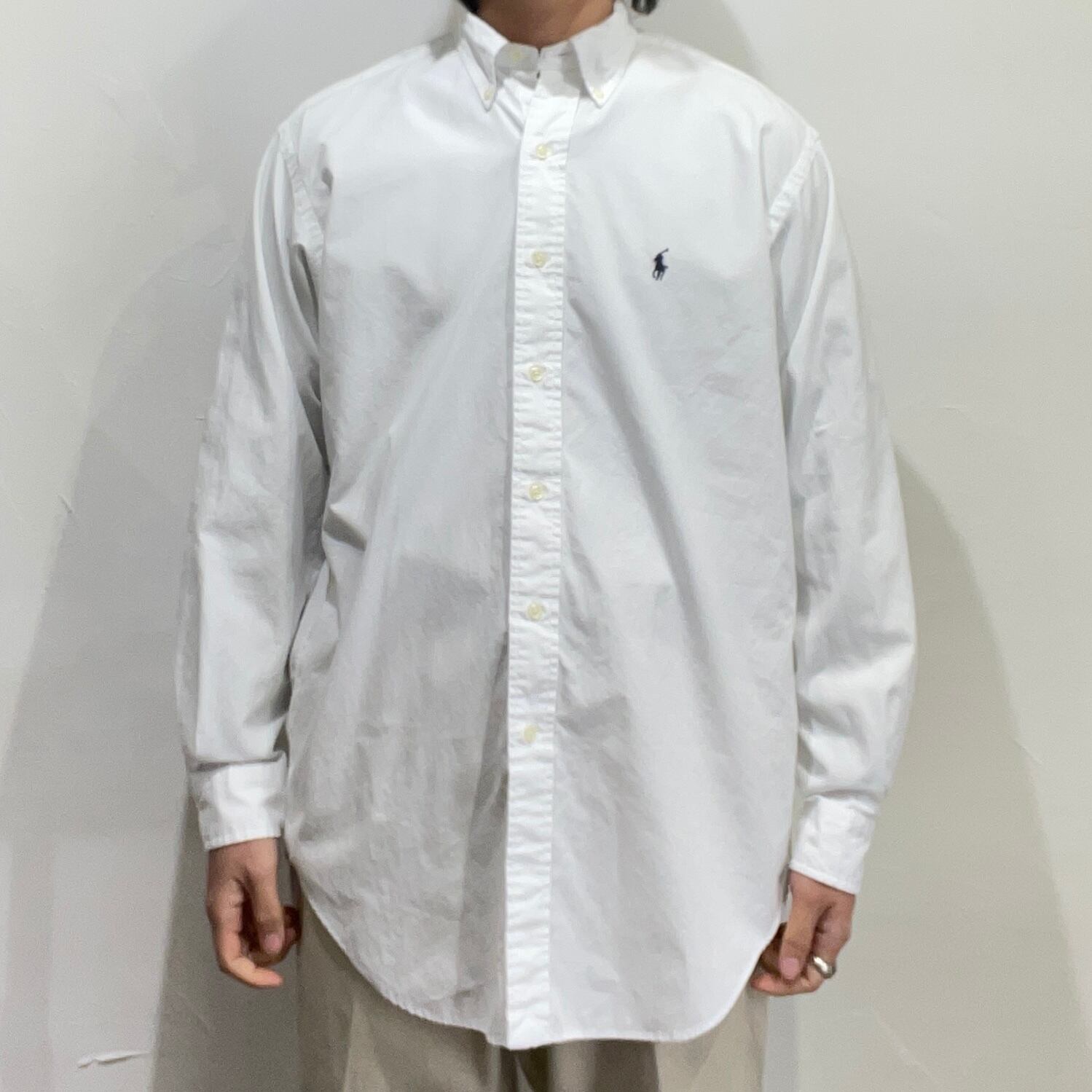 ポロラルフローレンのホワイトコットンボタンダウンシャツ。