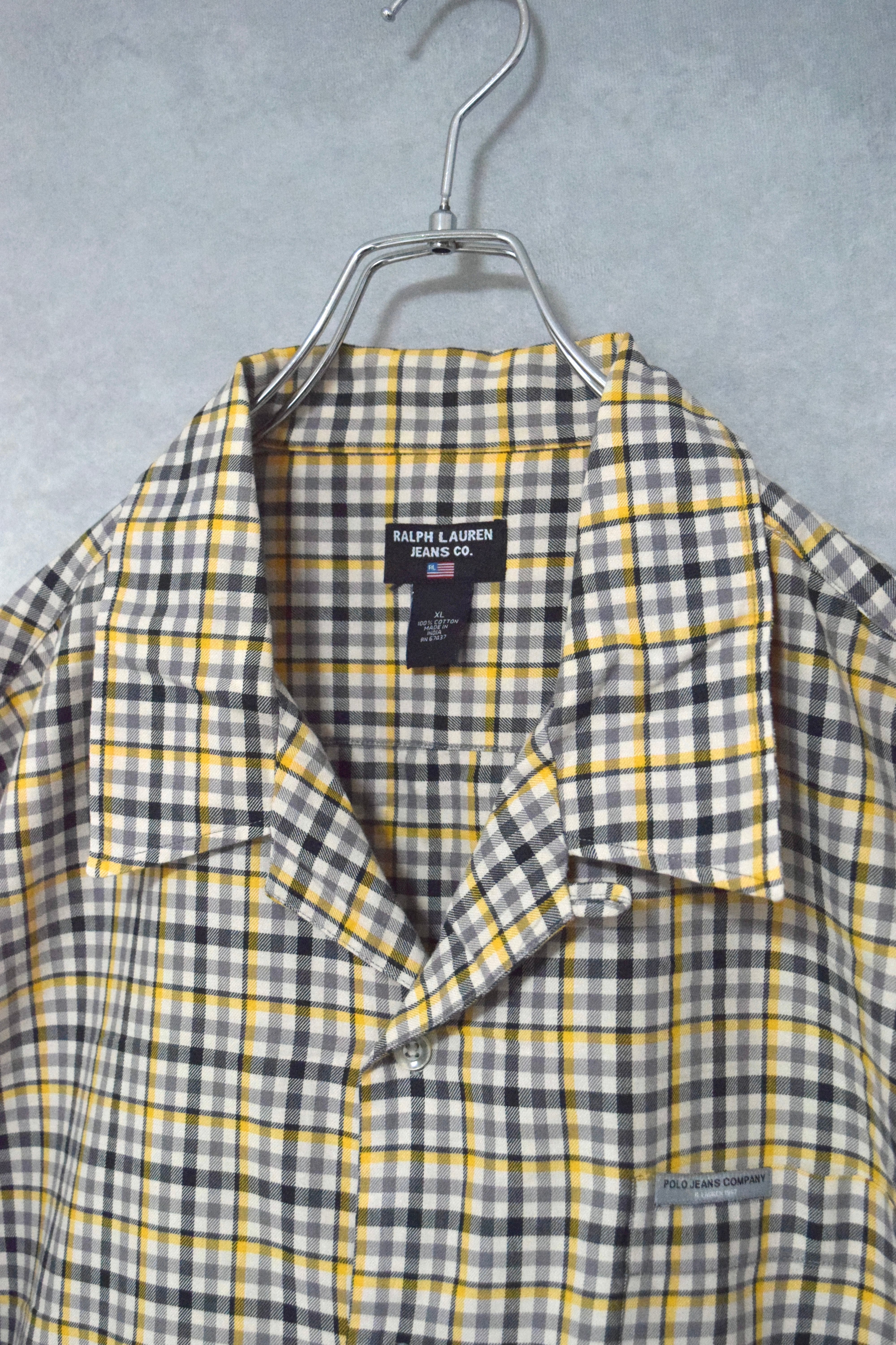 90s " polo jeans / ralph lauren " cotton open collar shirt / size XL