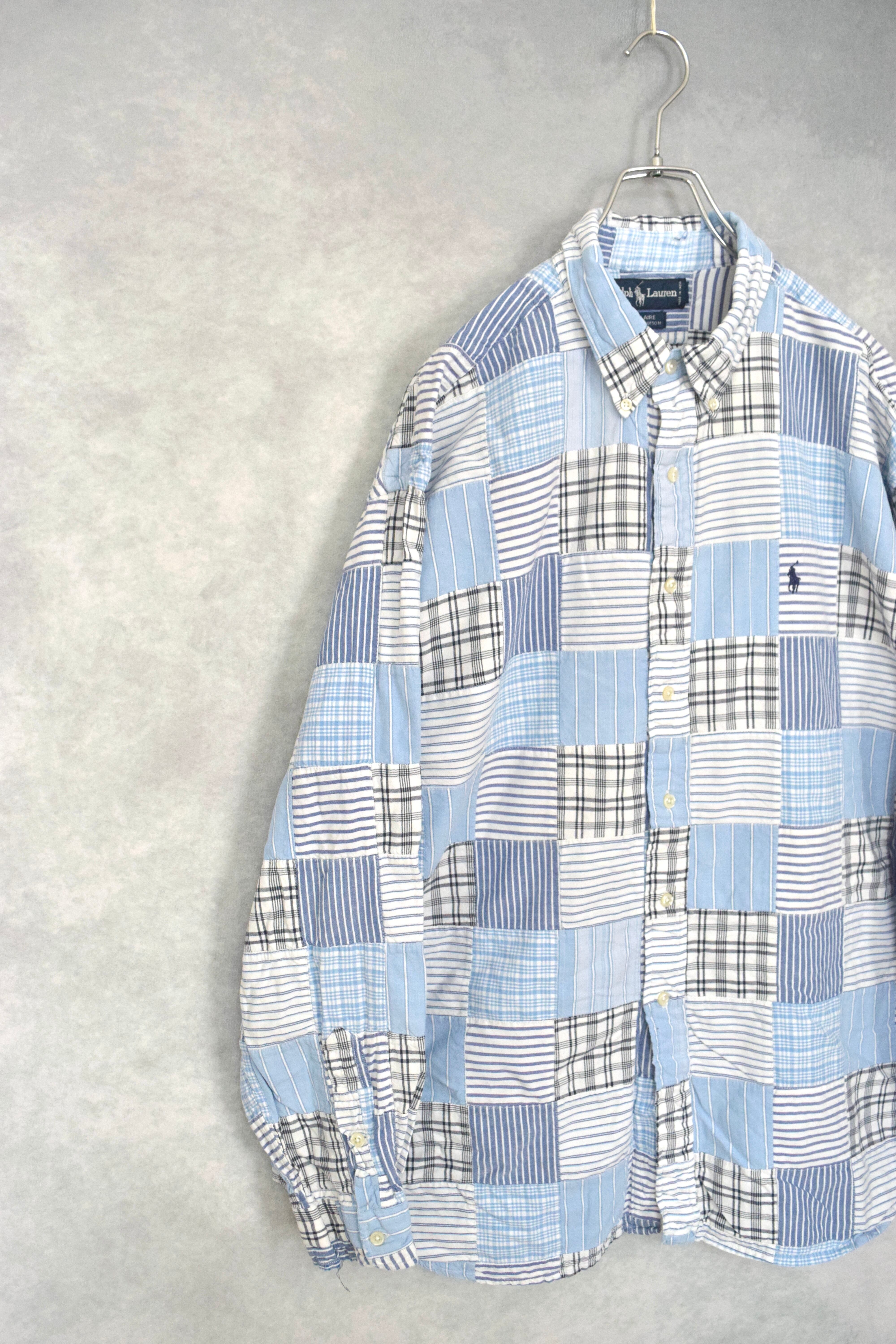 ポロラルフローレンのパッチワークパターンインディアコットンBDシャツ。