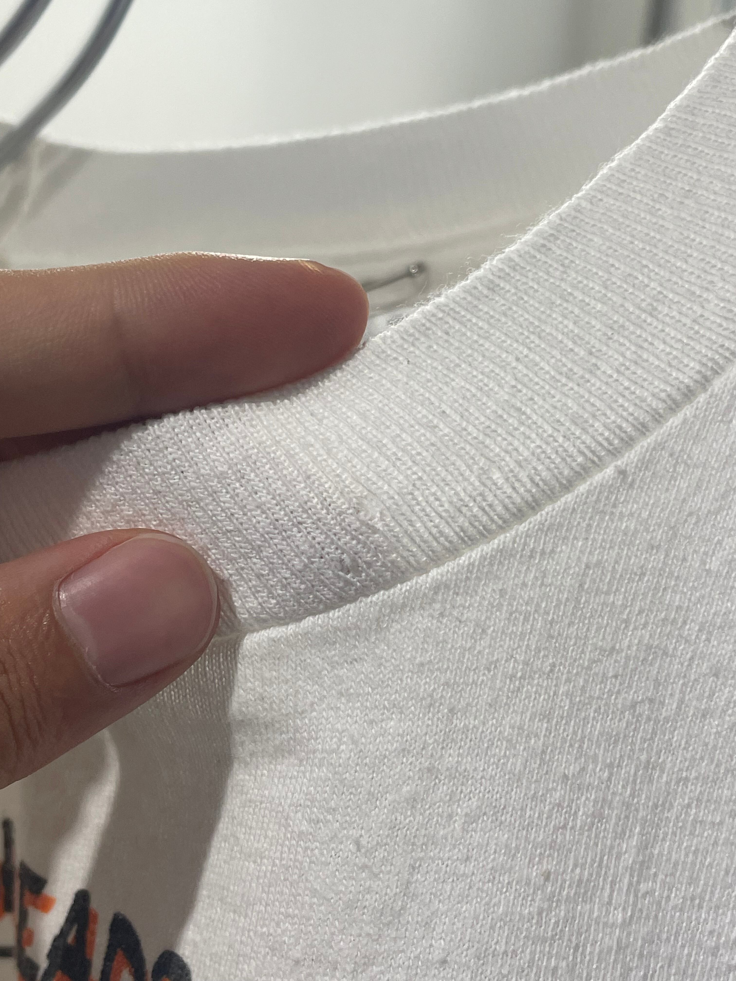首元のリブに目立たない程度のピンホールがございますが着用には問題ありません。