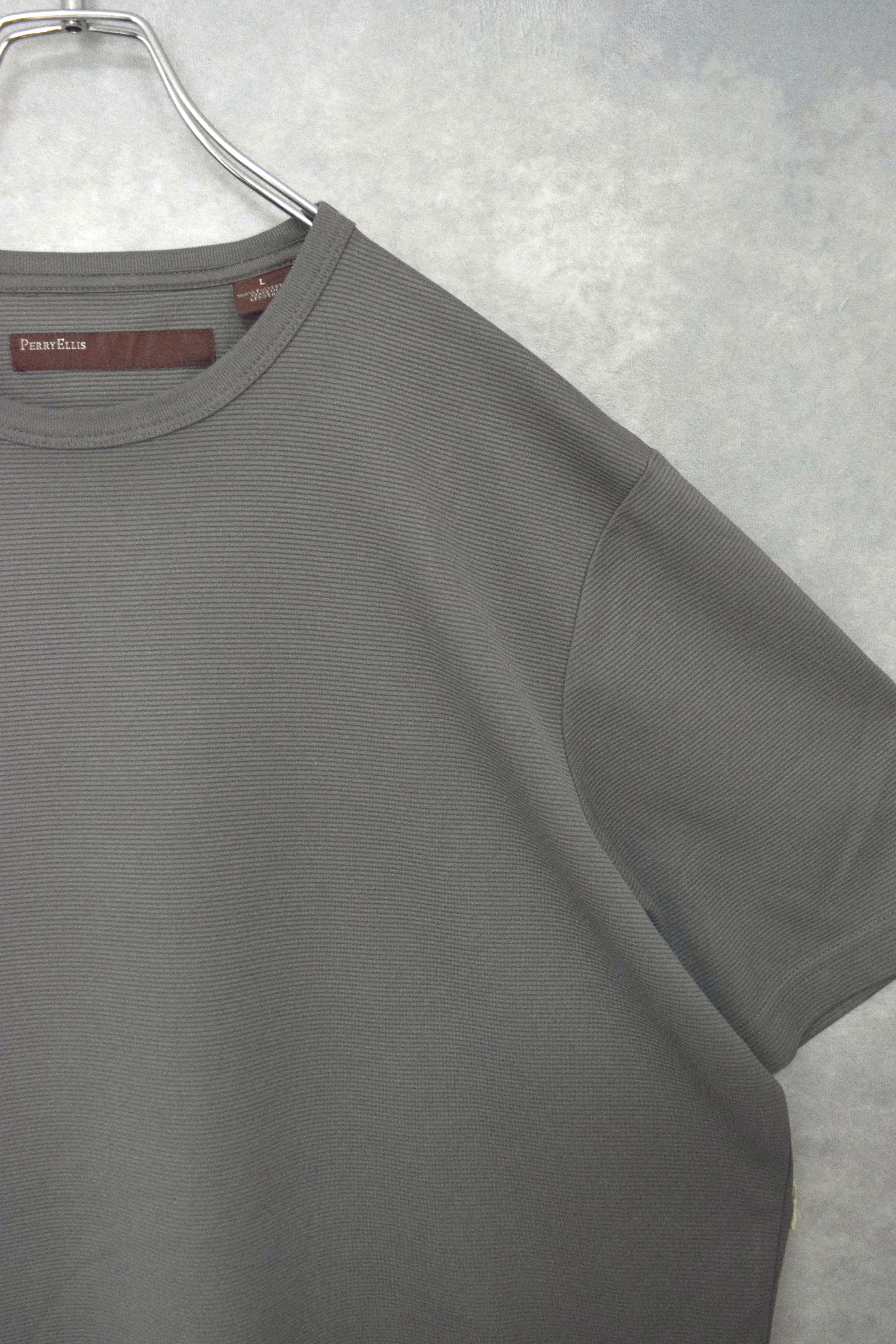 " perry ellis " pin border pattern polyester t-shirts / size L