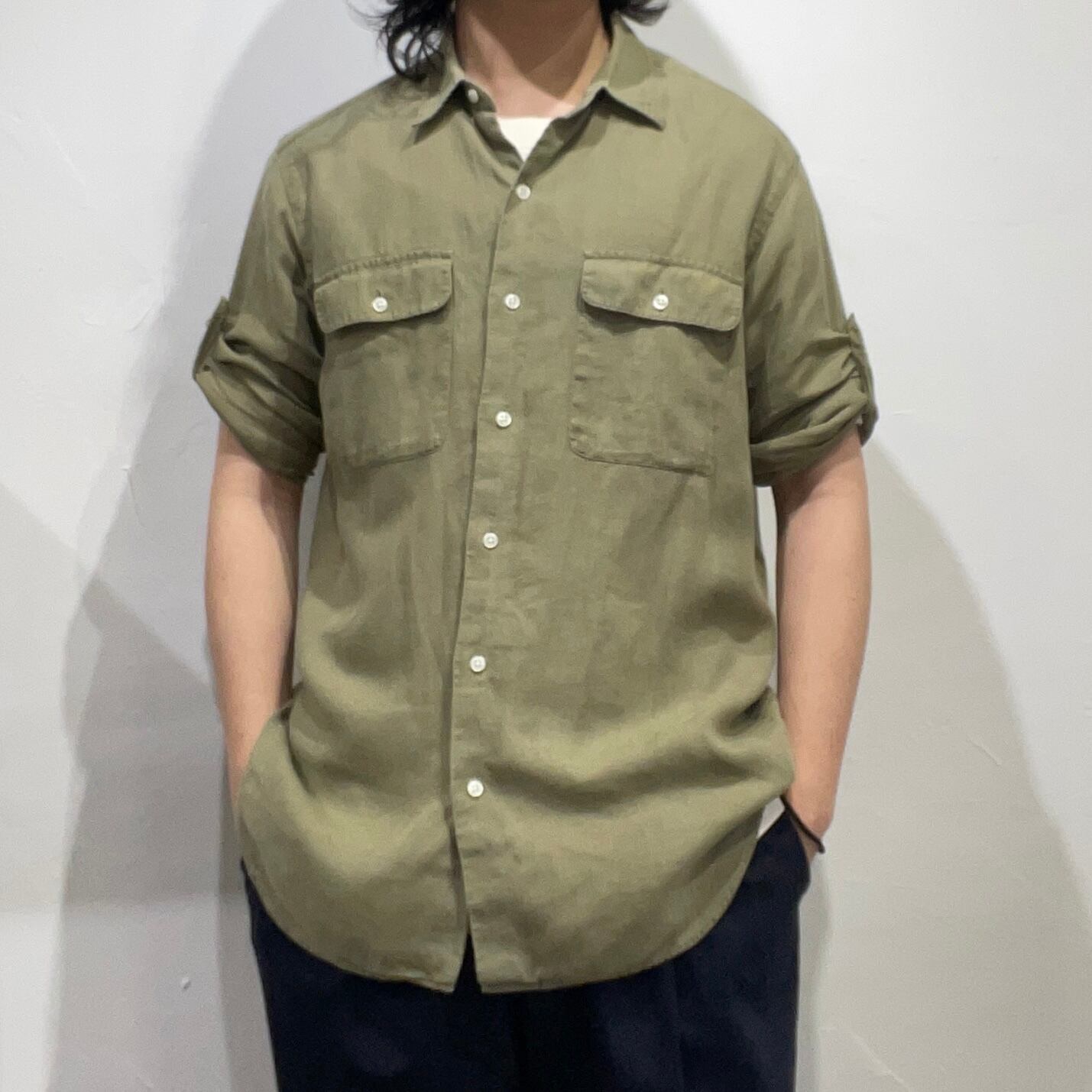 ボタンの位置も高くしっかり半袖のルックスに変わりますね。