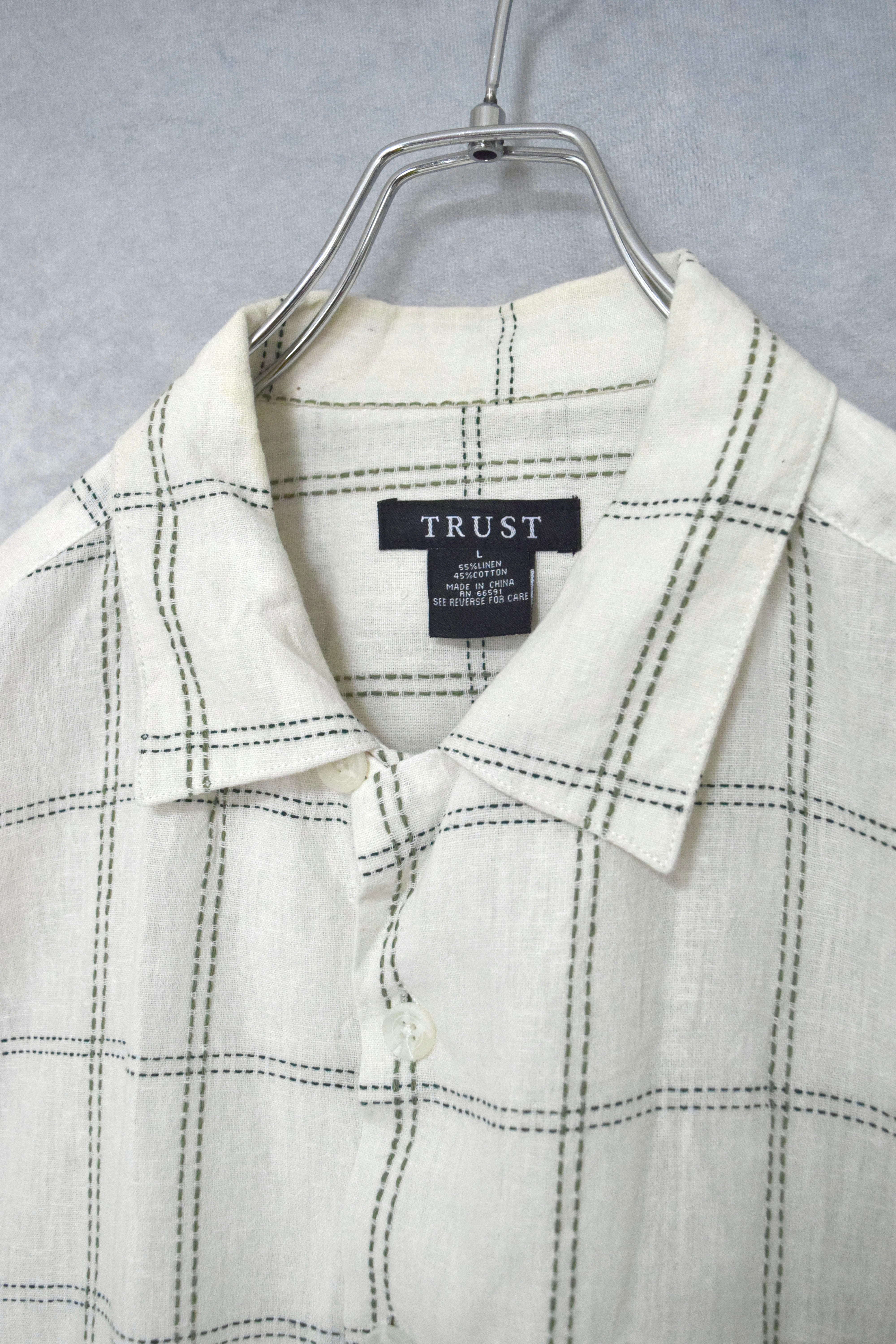 linen x cotton open collar shirt / size L