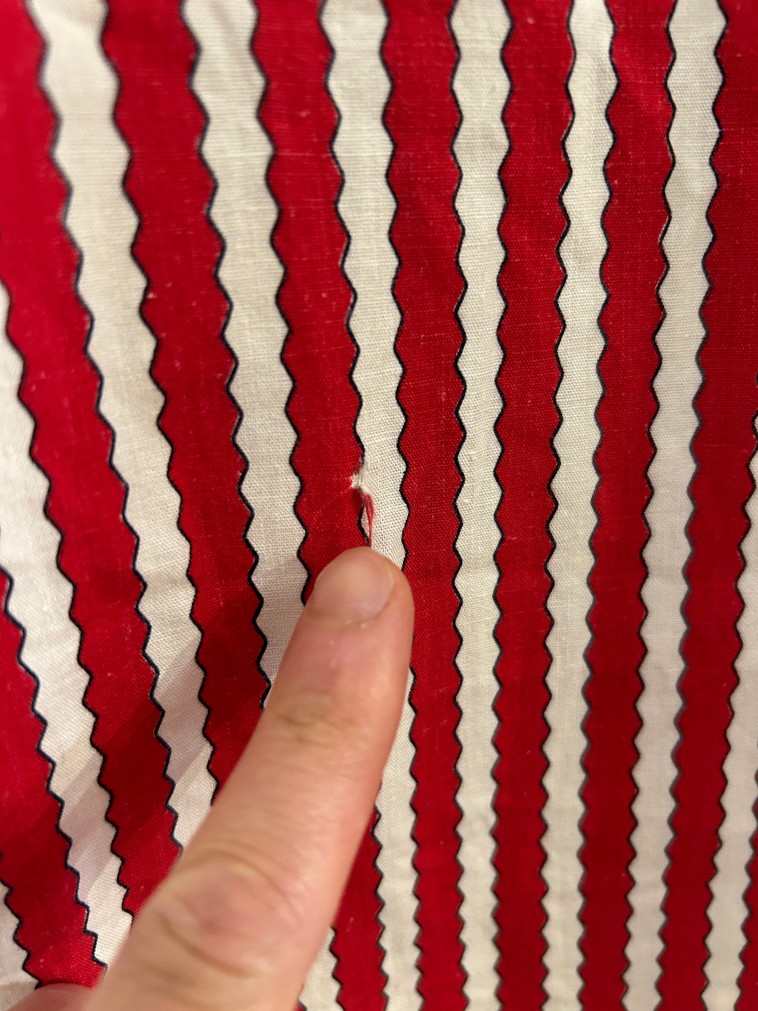 レッドとホワイトのストライプは普通のストライプではなくジグザグのストライプ。