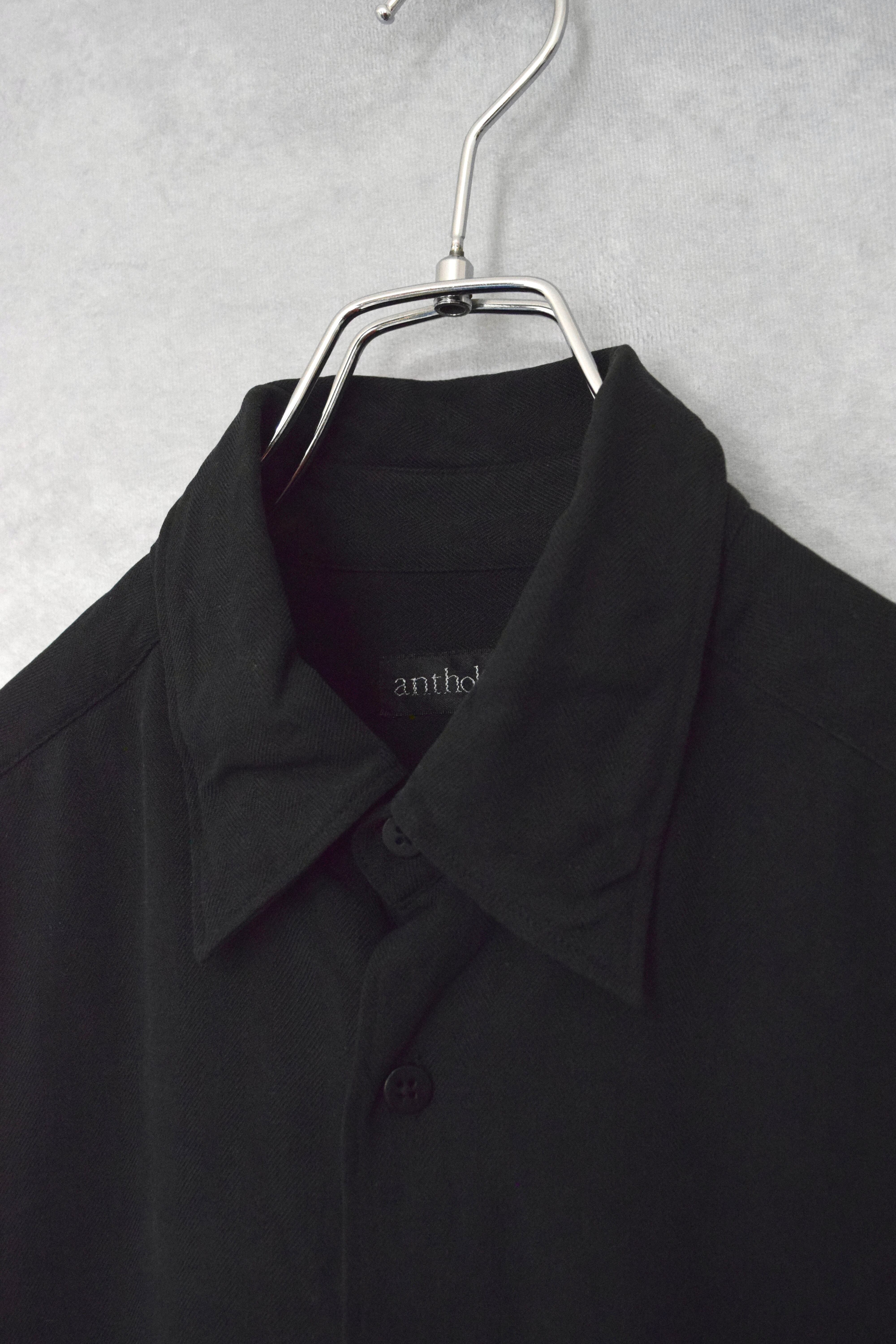ブラックのヘリンボーンシルクボタンダウンシャツ。