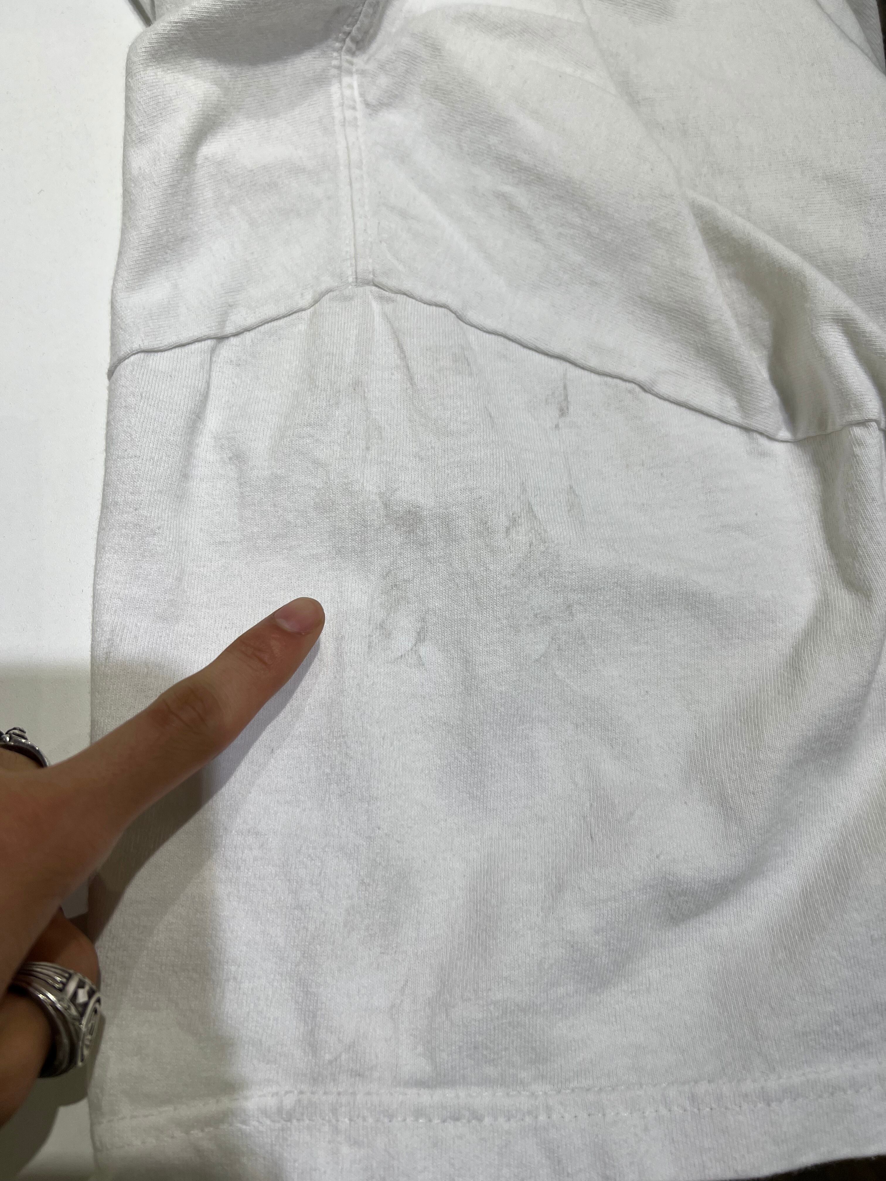 左袖、背面左裾に目立たない程度の薄い汚れがあります。
