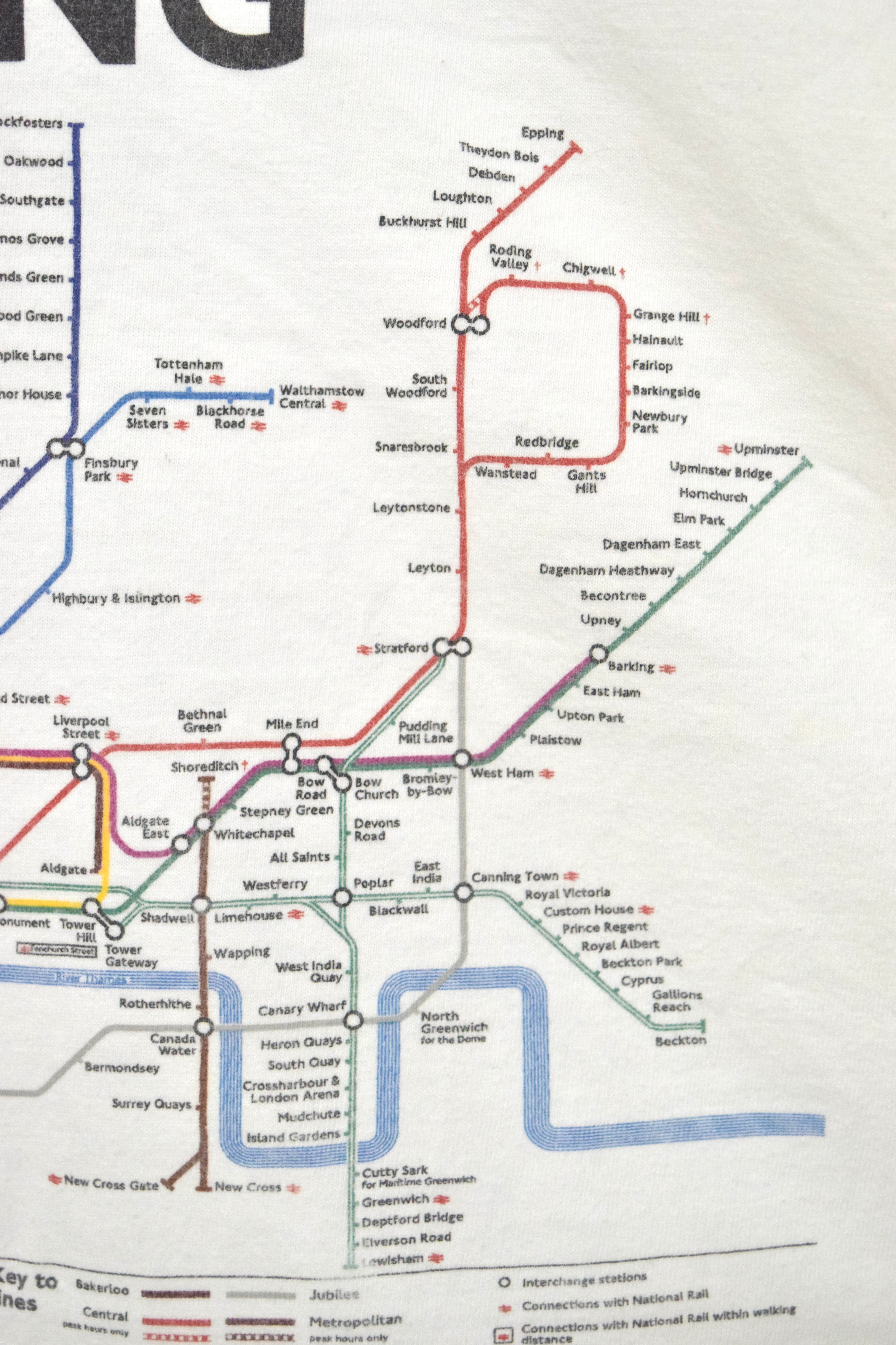 ホワイトボディに大きくプリントされたロンドンの地下鉄路線図。