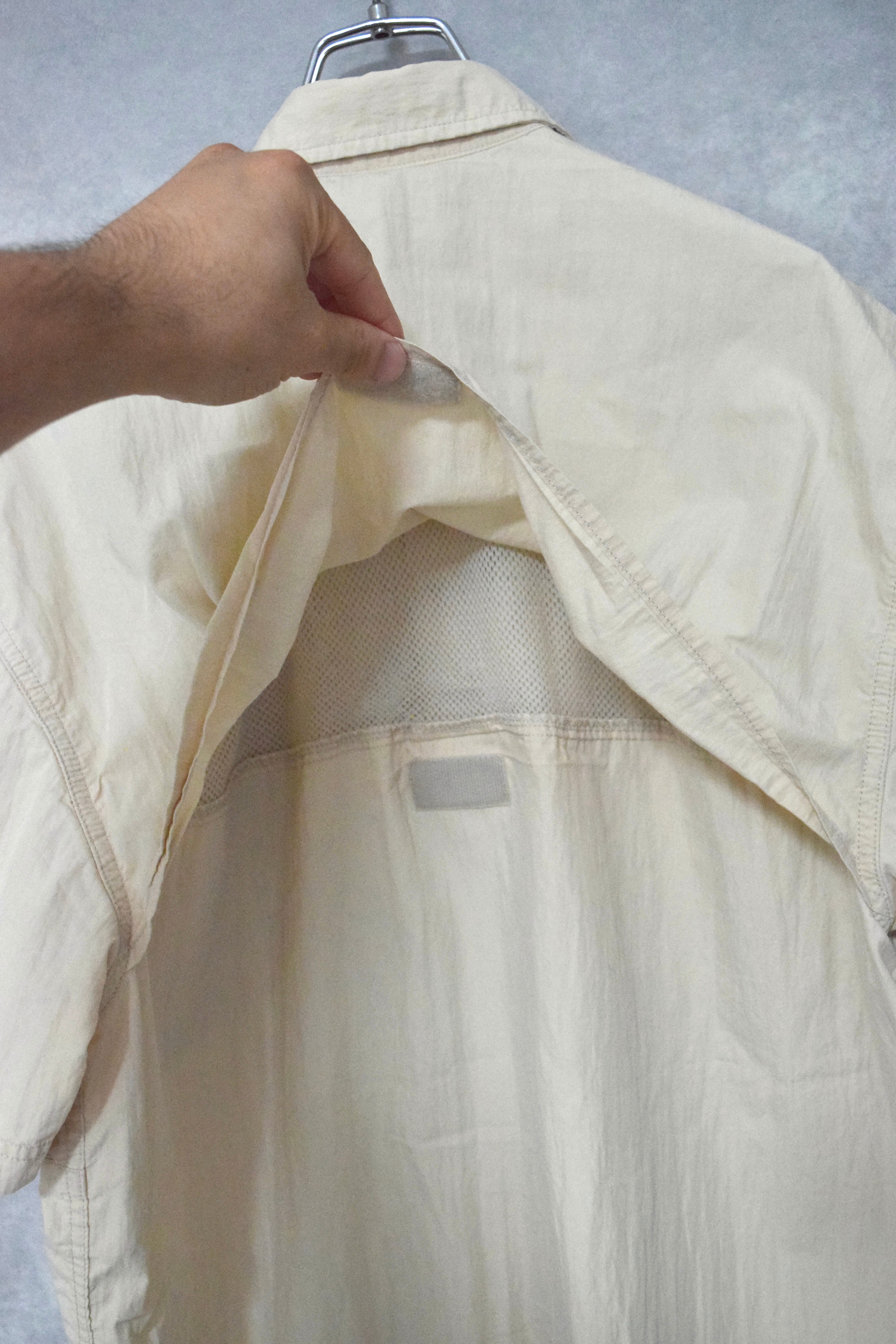 90s " eddie bauer / legend " cotton x nylon gimmick shirt / size ML