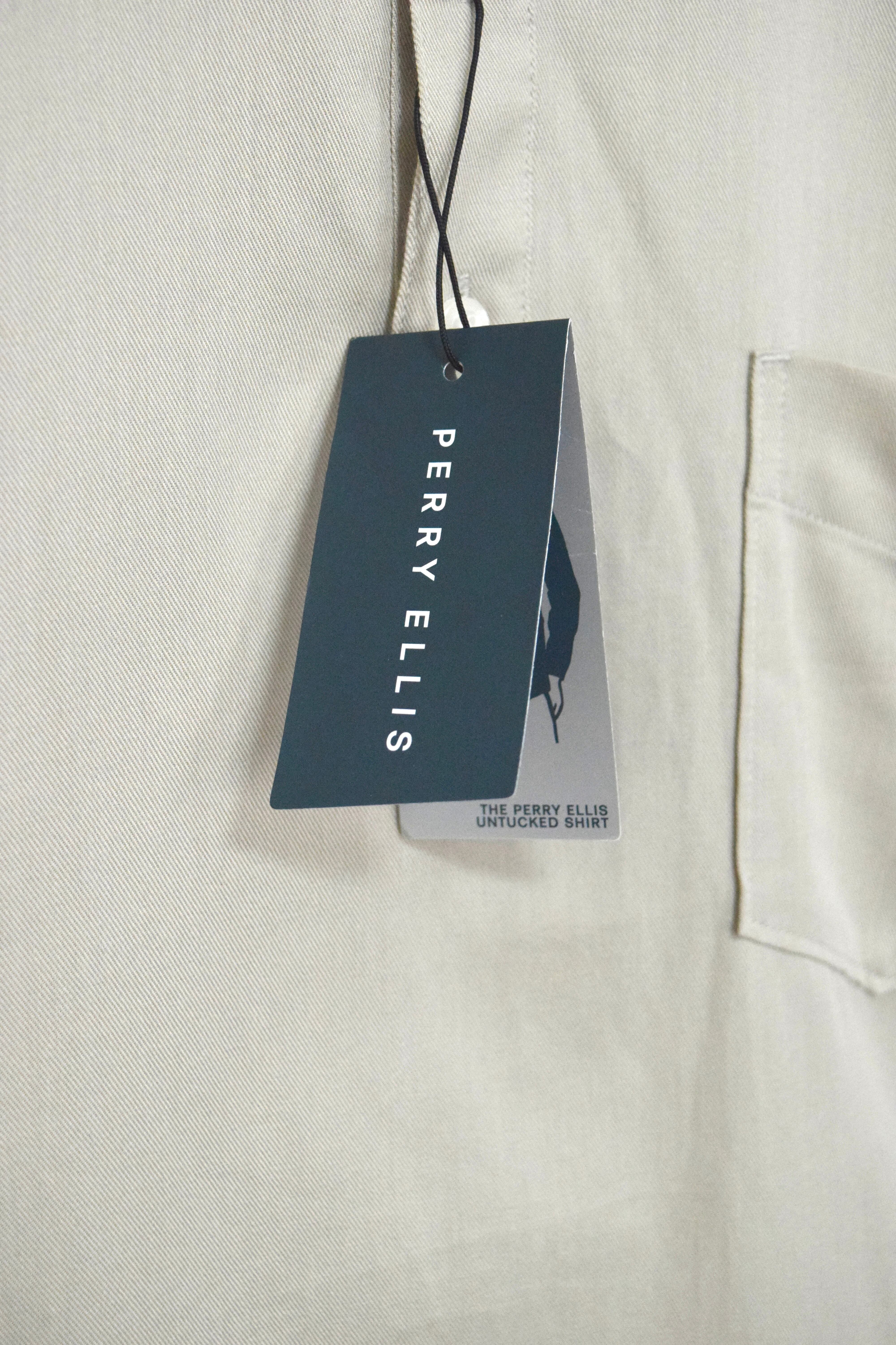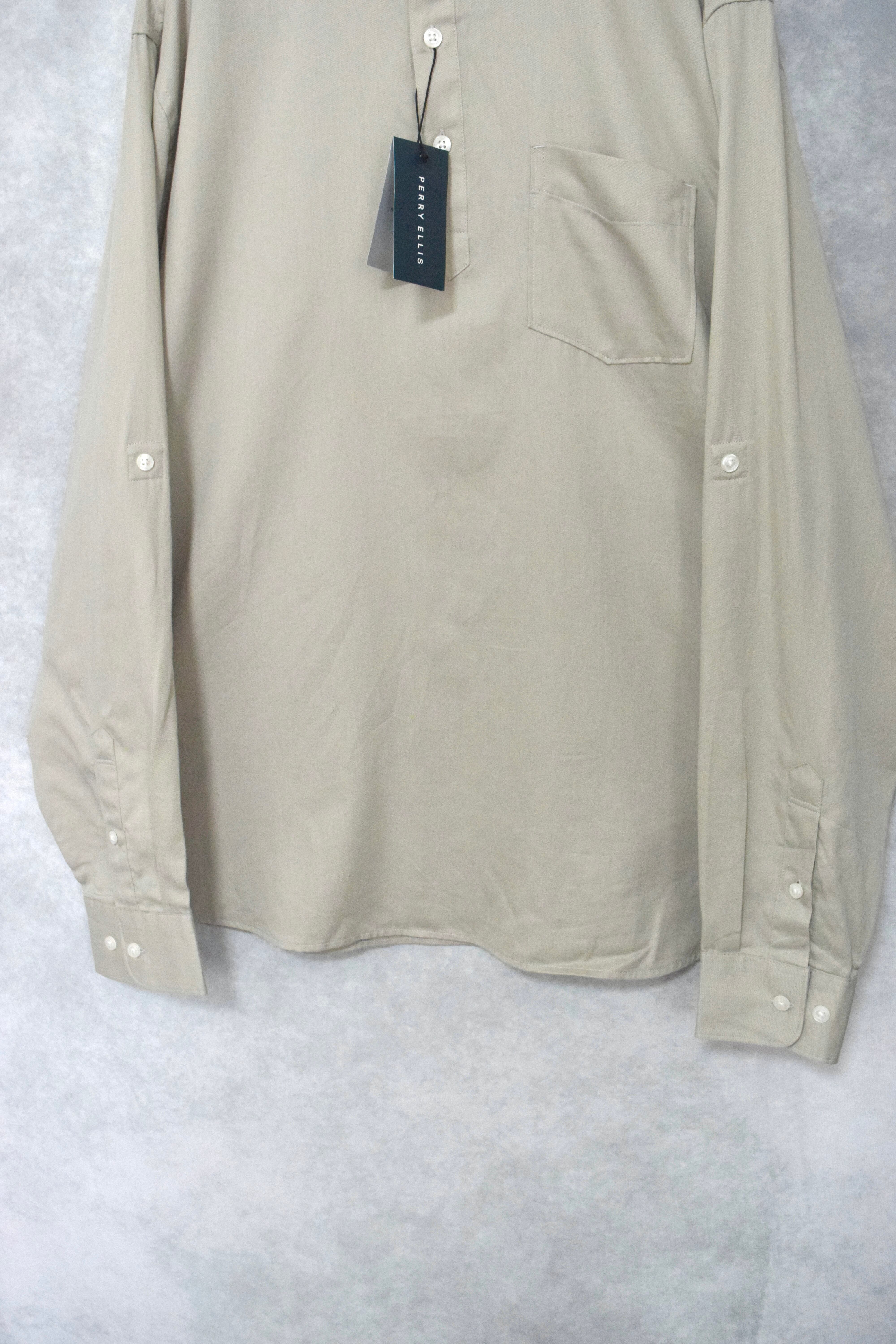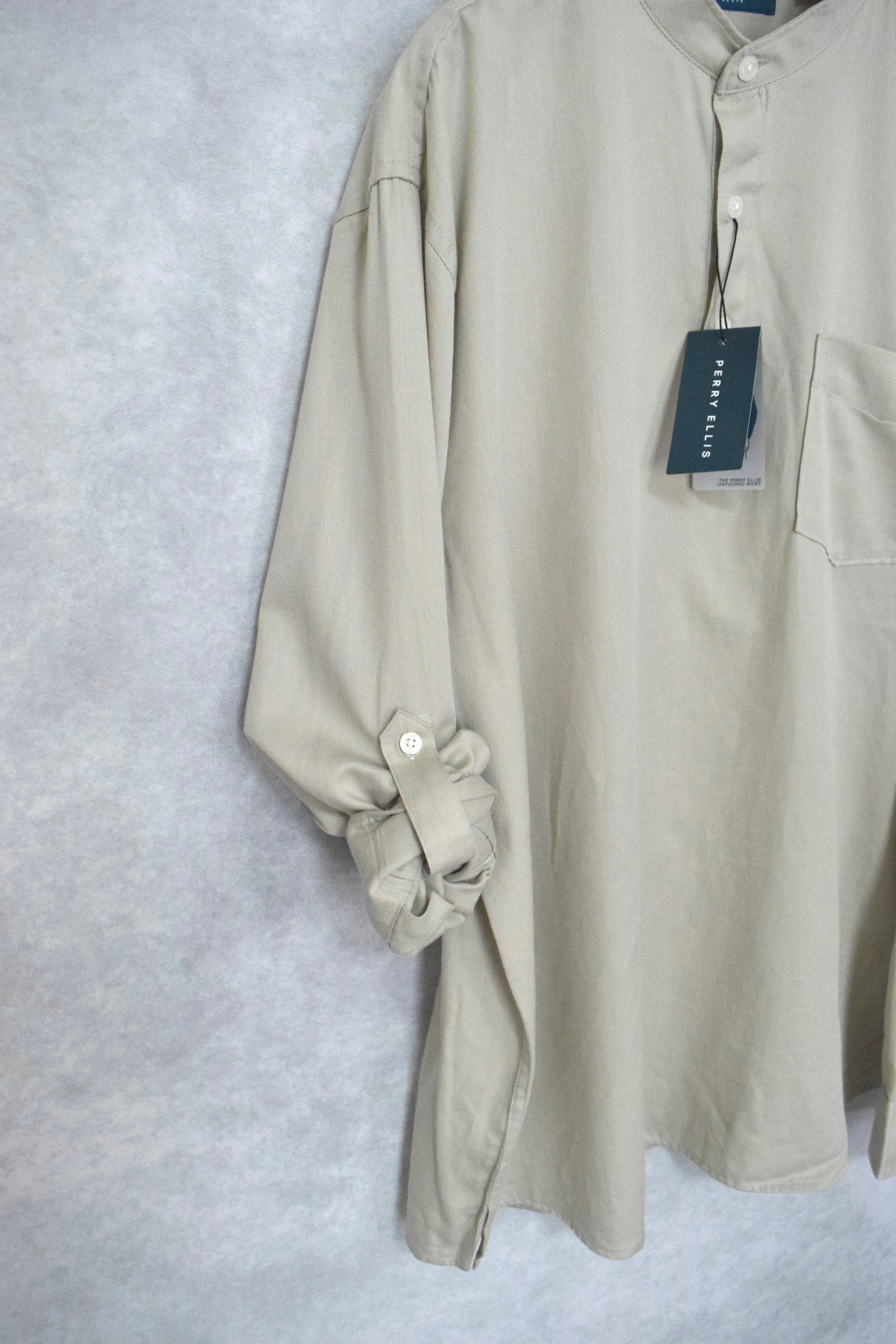 dead stock " perry ellis " cupra x lyocell stand collar pull over shirt / size L