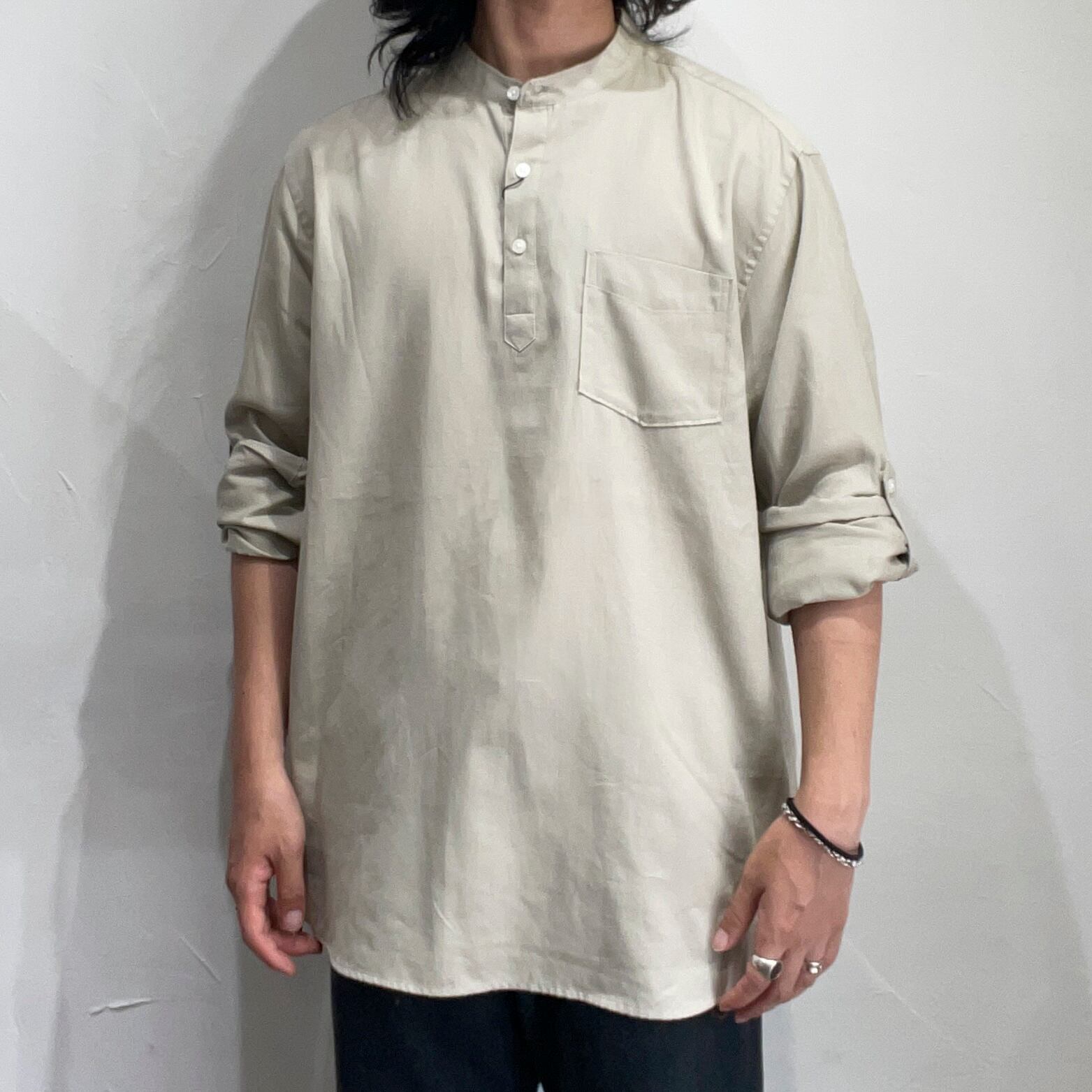 ペリーエリスのキュプラxリヨセル スタンドカラープルオーバーシャツ。