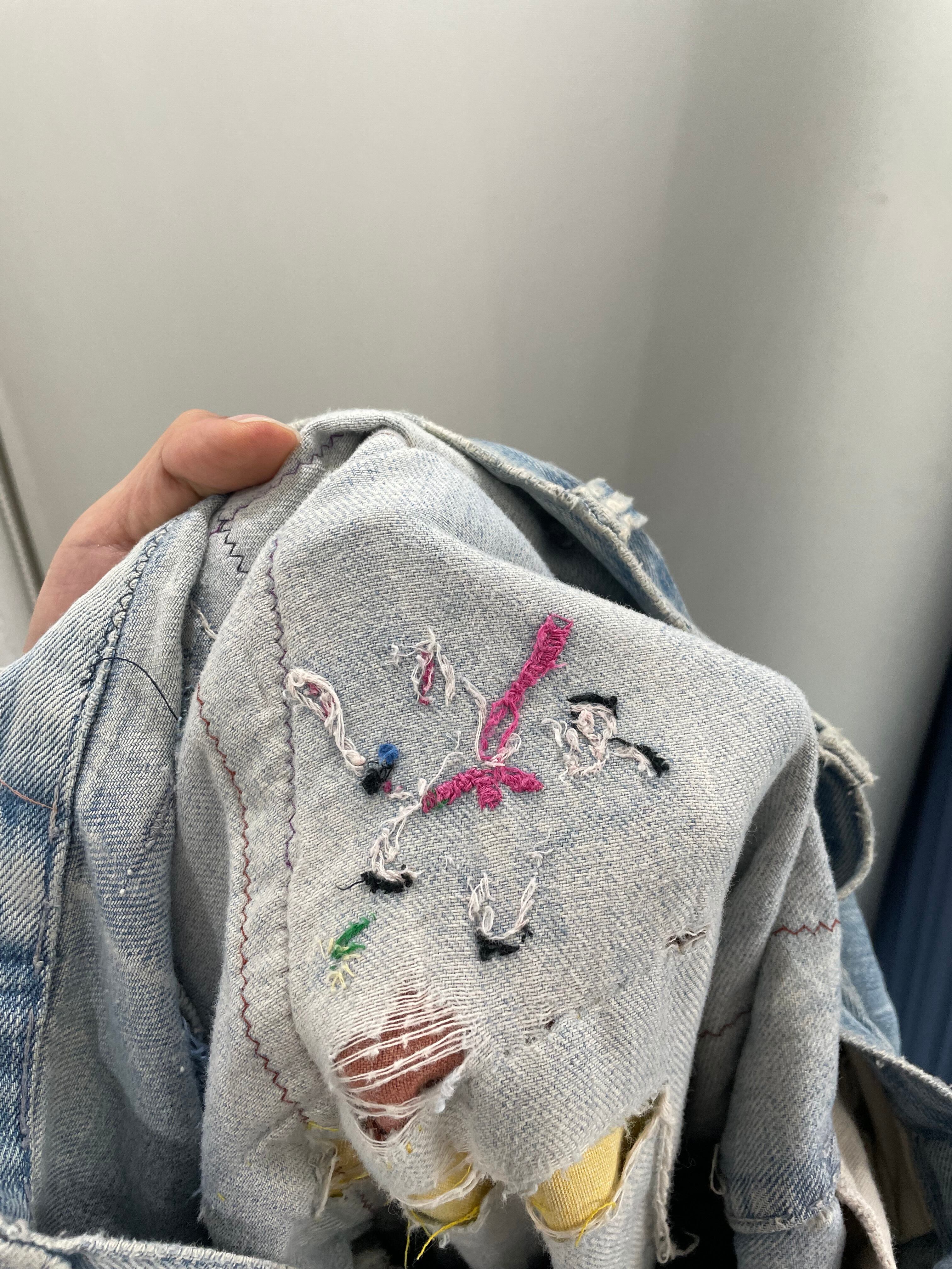 見えない部分のため余談ではありますが、お尻の裏地を見ると他にも可愛い刺繍の跡が。