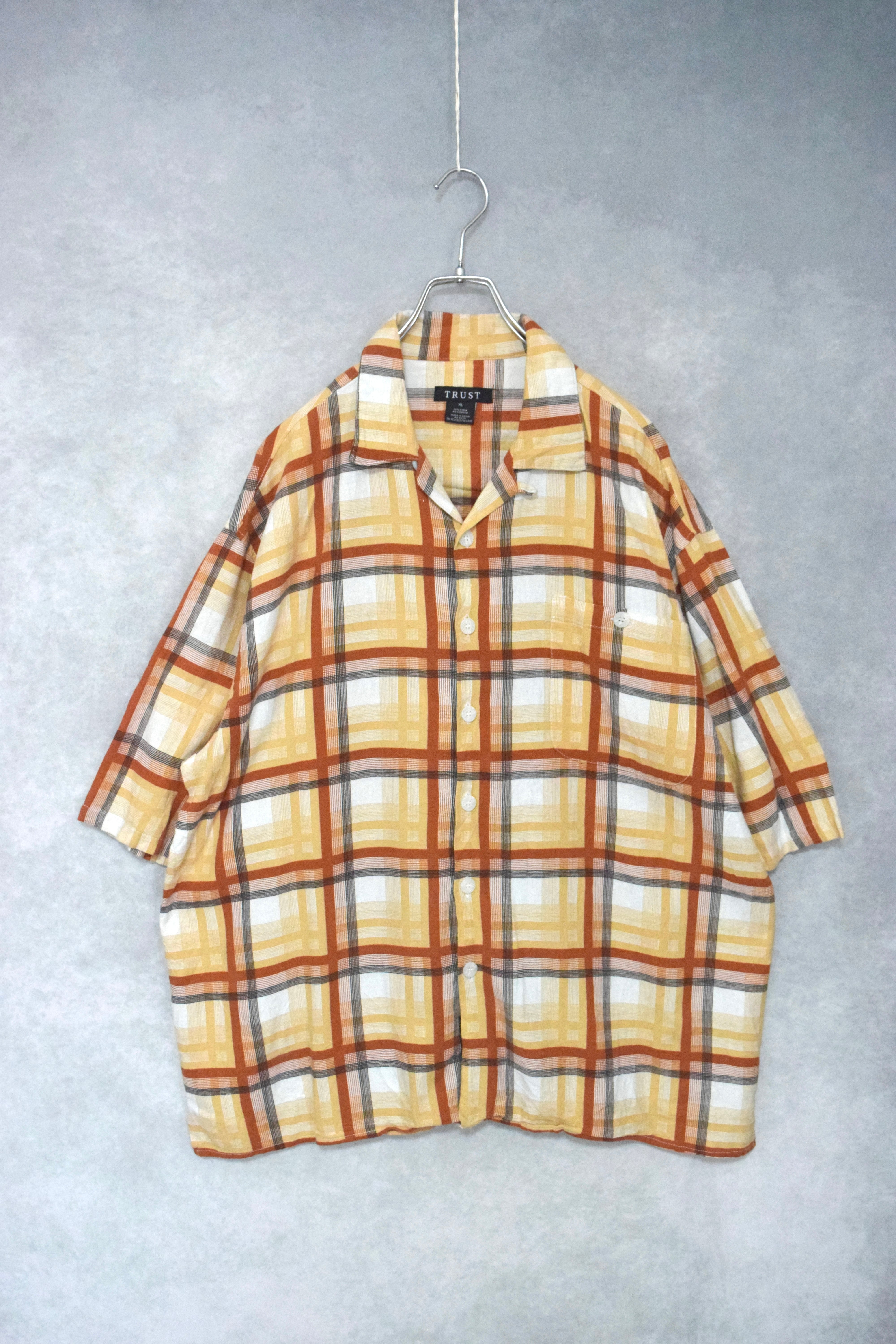 トラストのリネンxレーヨンオープンカラーシャツ。