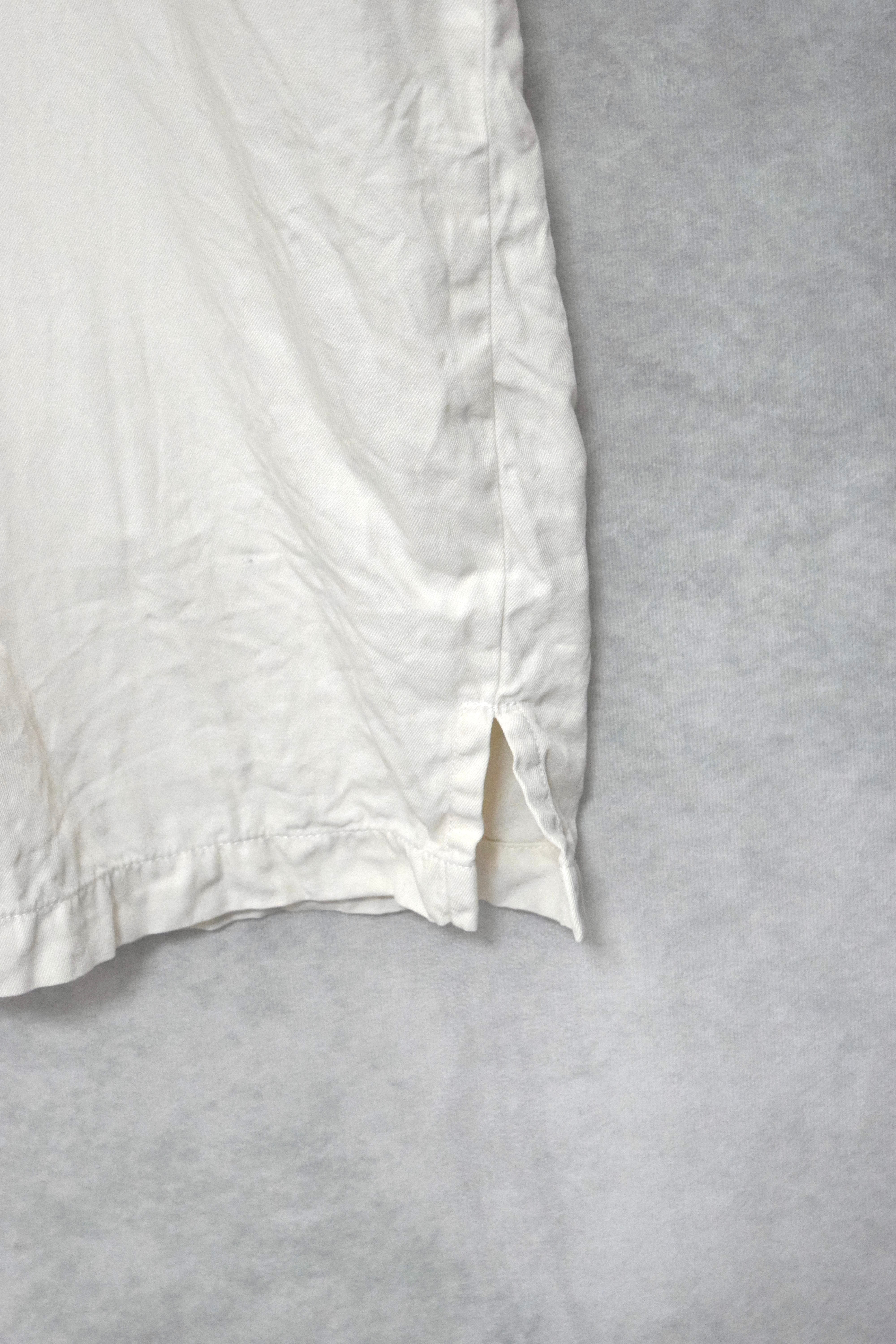 トミーバハマの100%ホワイトシルクオープンカラーシャツ。