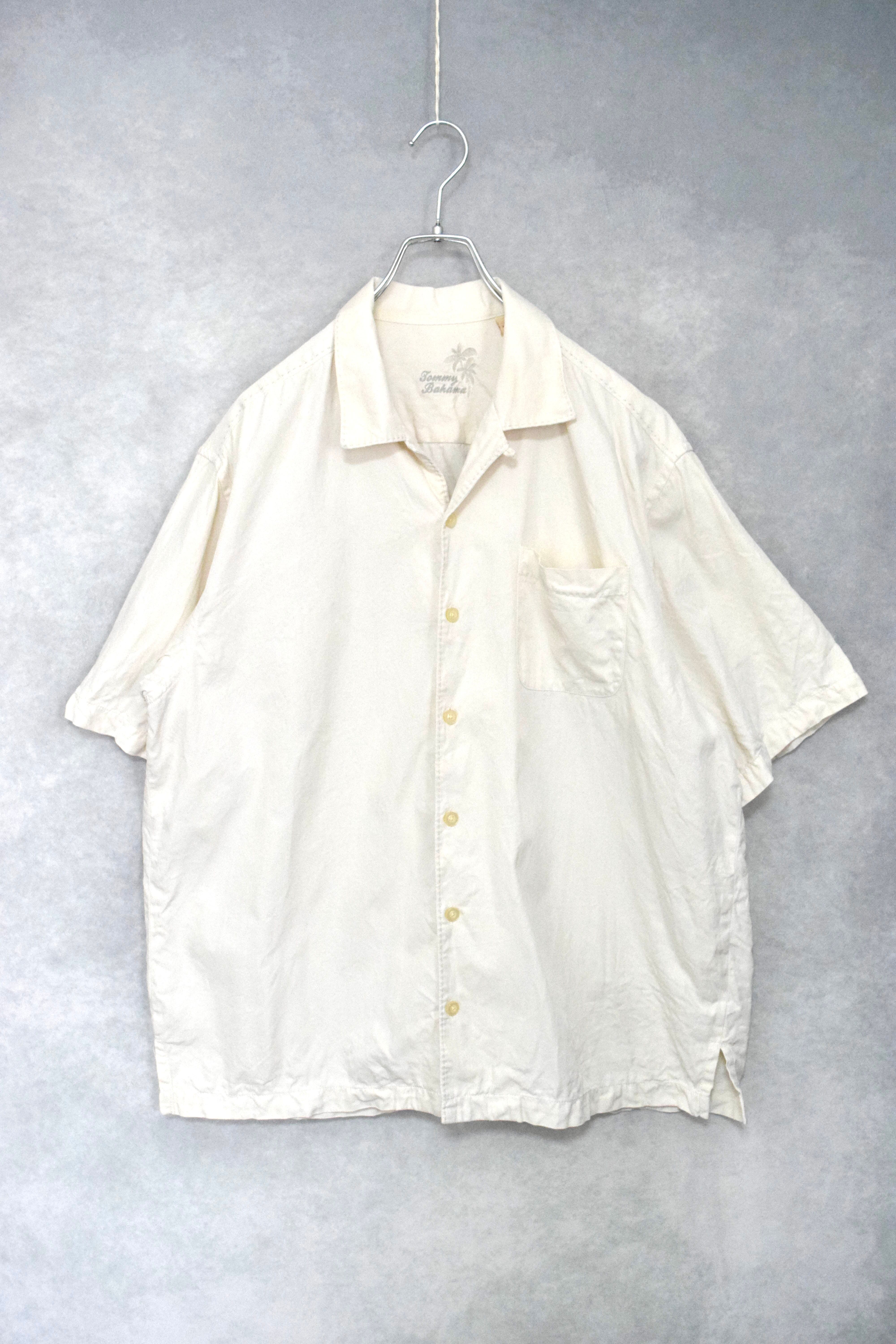 old " tommy bahama " 100% white silk open collar shirt / size L