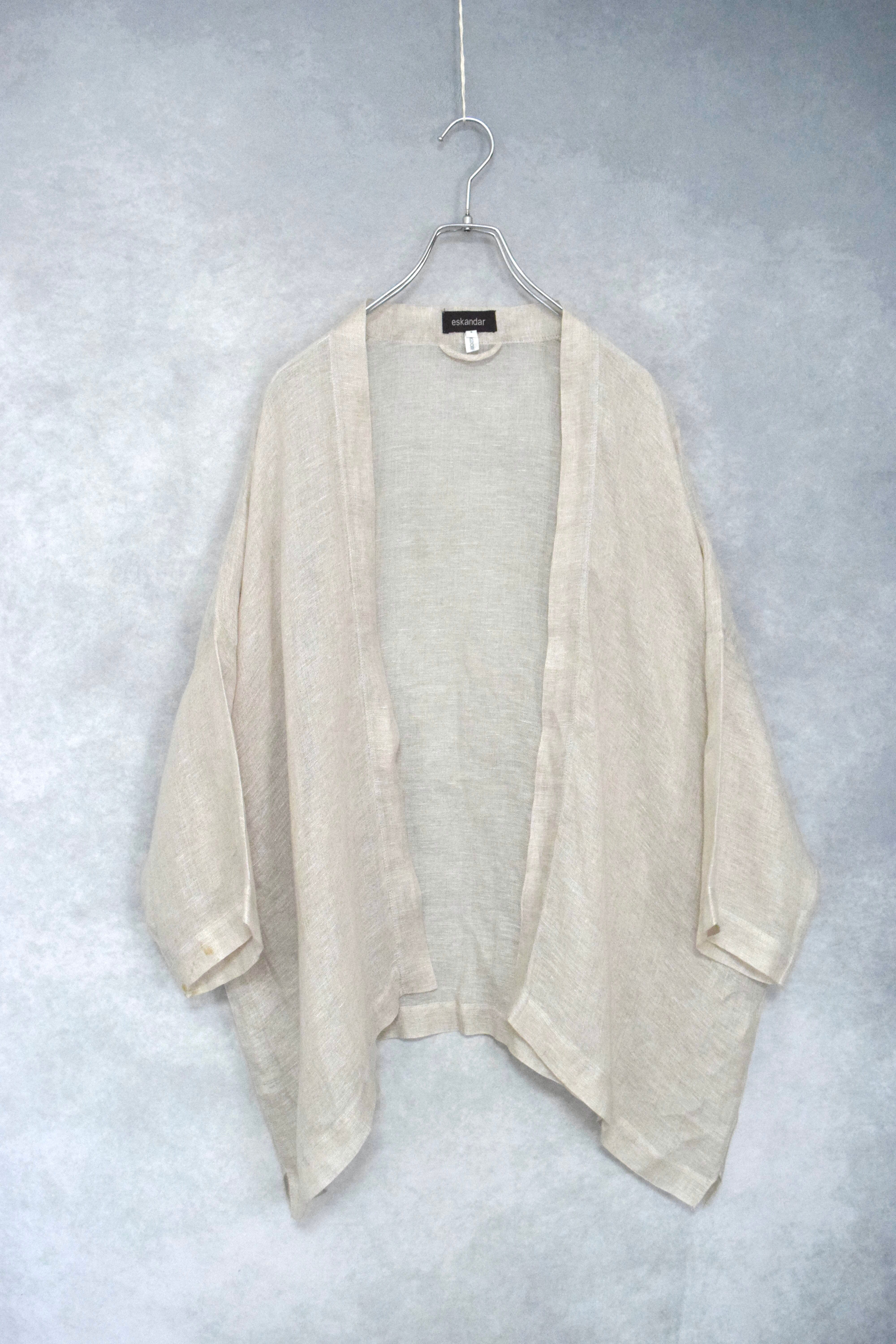 00s " eskandar " 100% linen HAORI 3/4 sleeves shirt / made in england