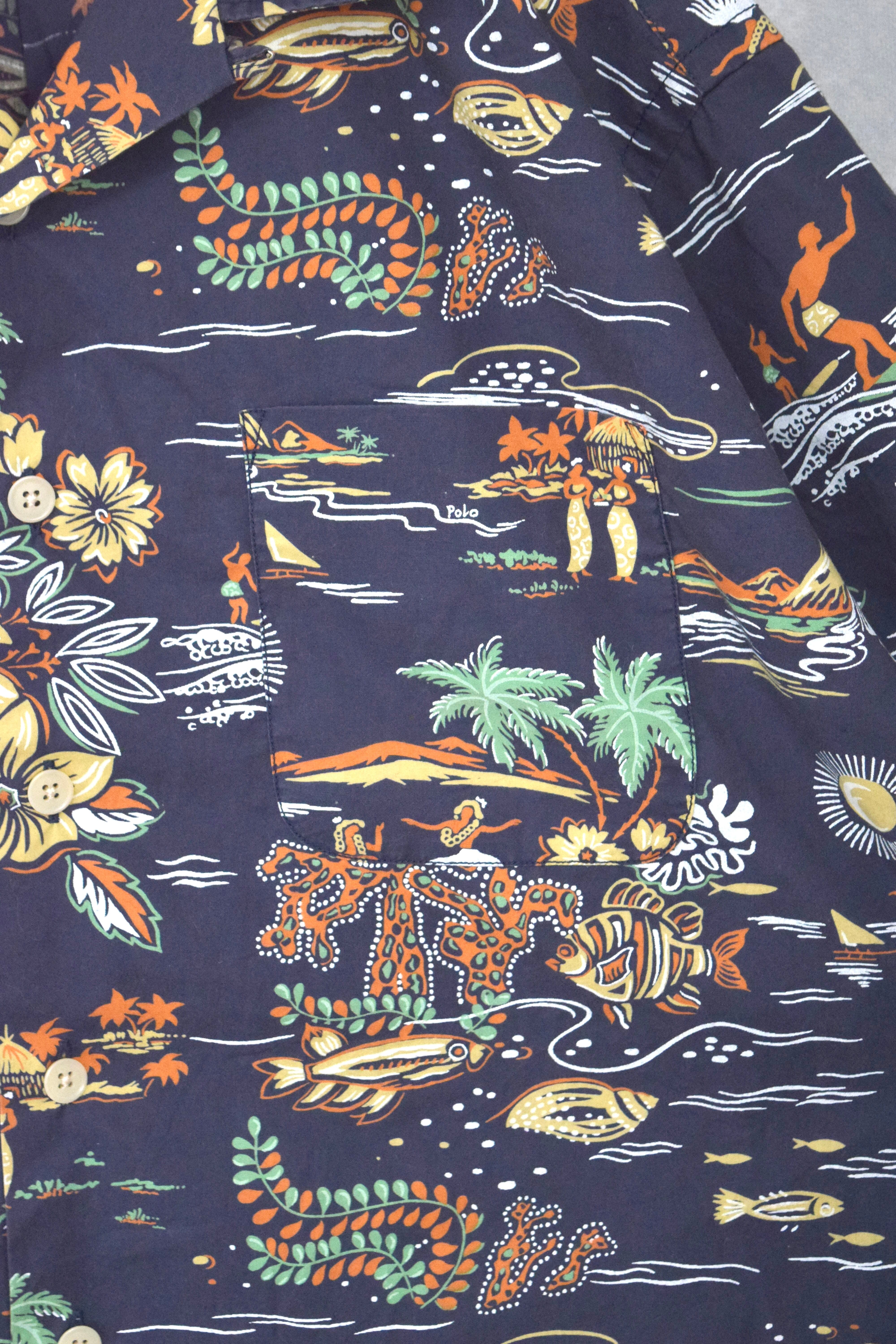 ポロスポーツのコットンオープンカラーハワイアンシャツ。