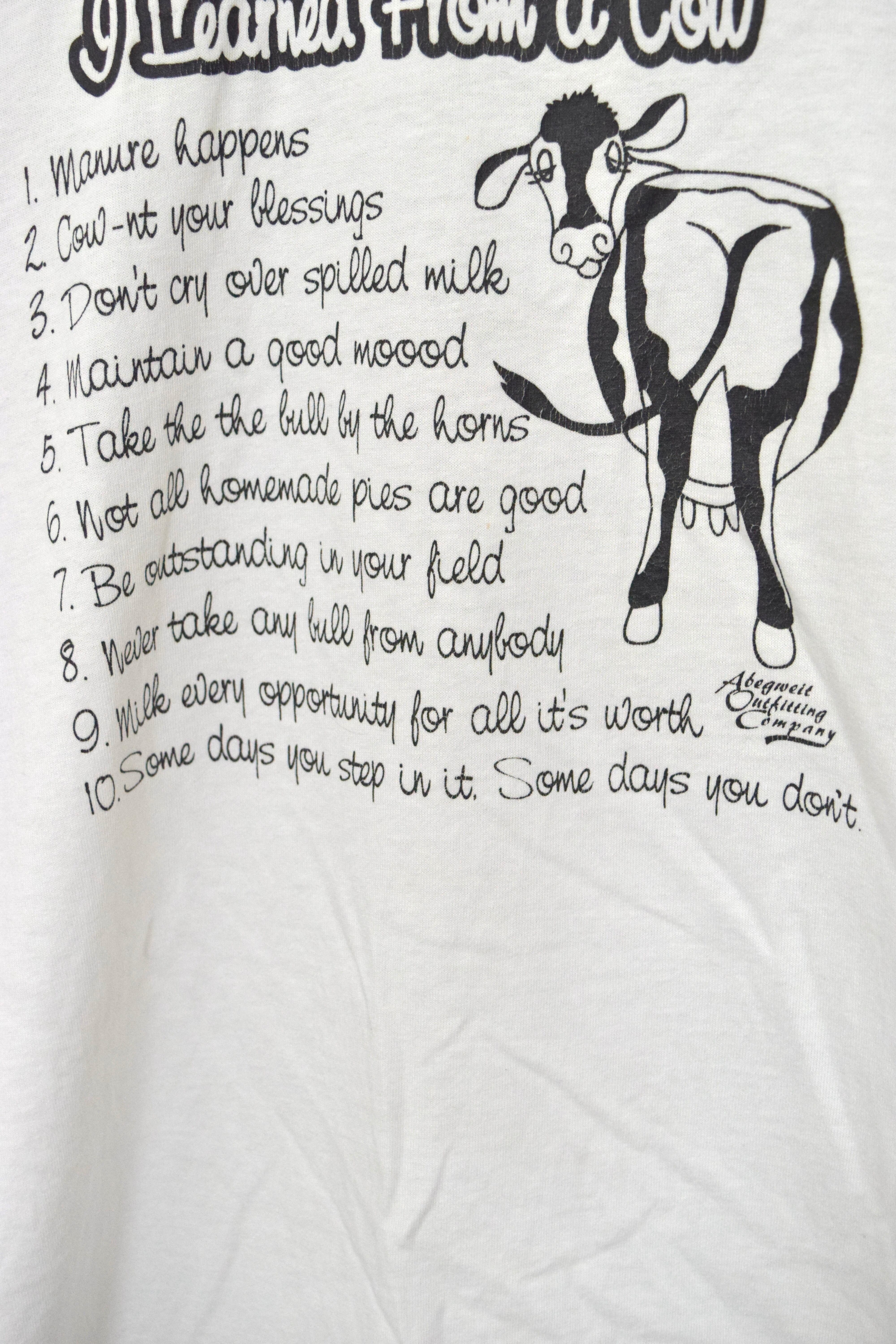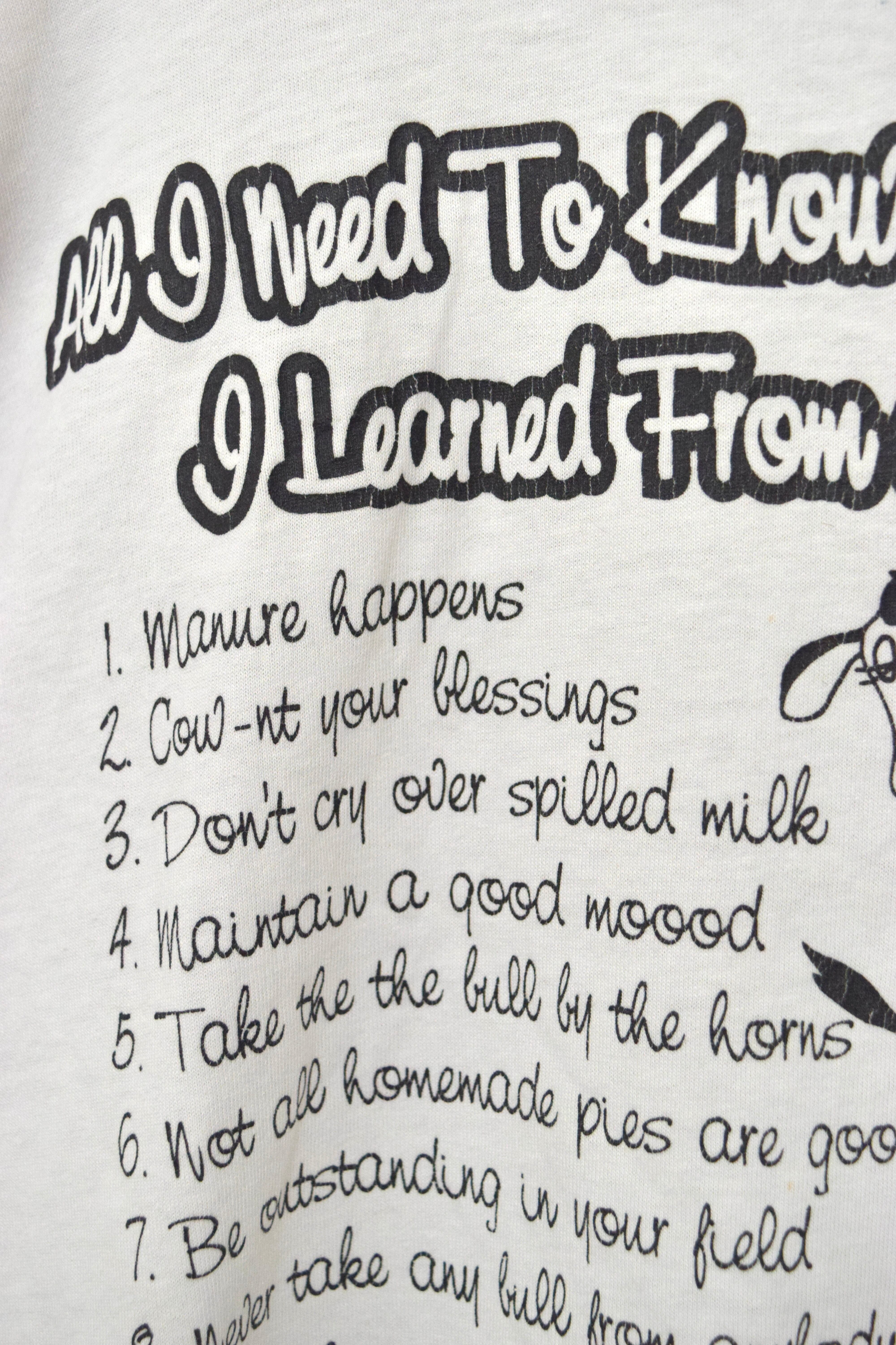人生に必要なことは全て牛から学んだっていうTシャツ。