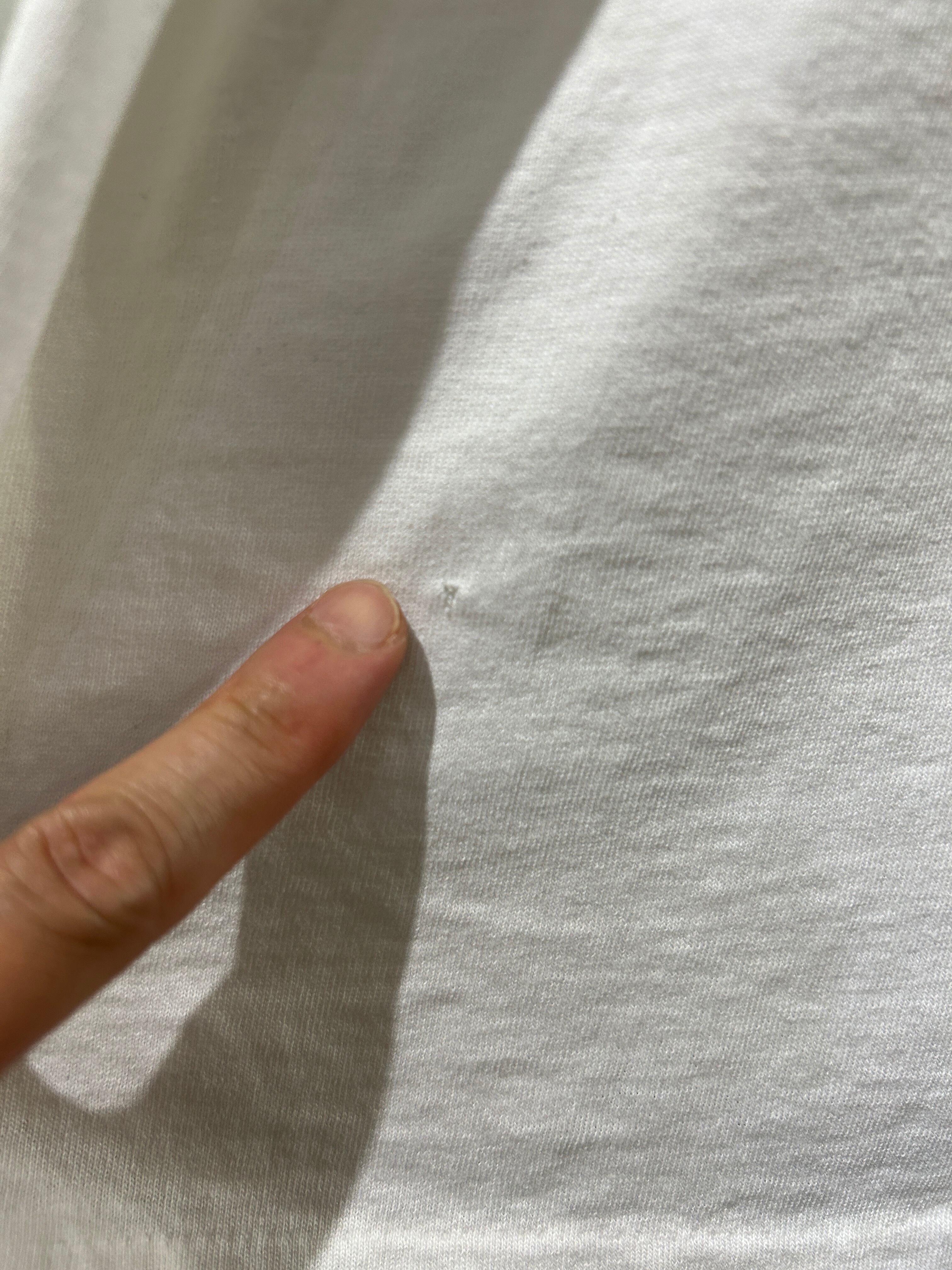 前面、右裾に嘘汚れと小穴。左真ん中付近に点ほどの薄汚れ。