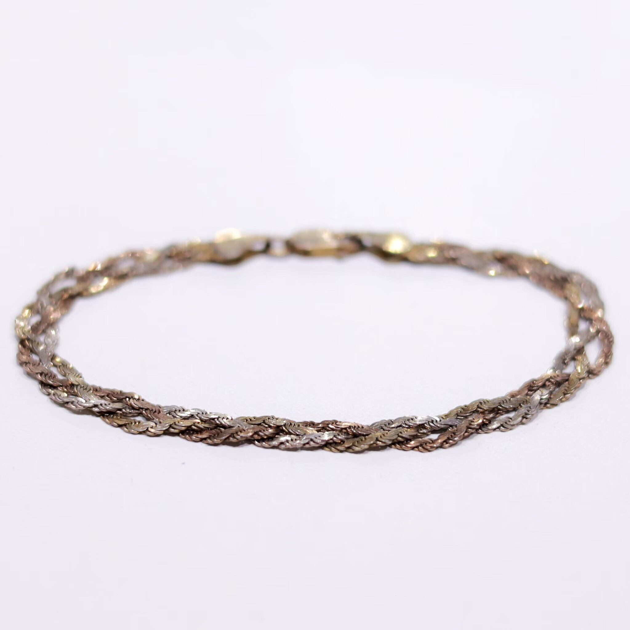 風合いの異なる2種のシルバーが織り合うように連なった豪華なチェーンデザイン。