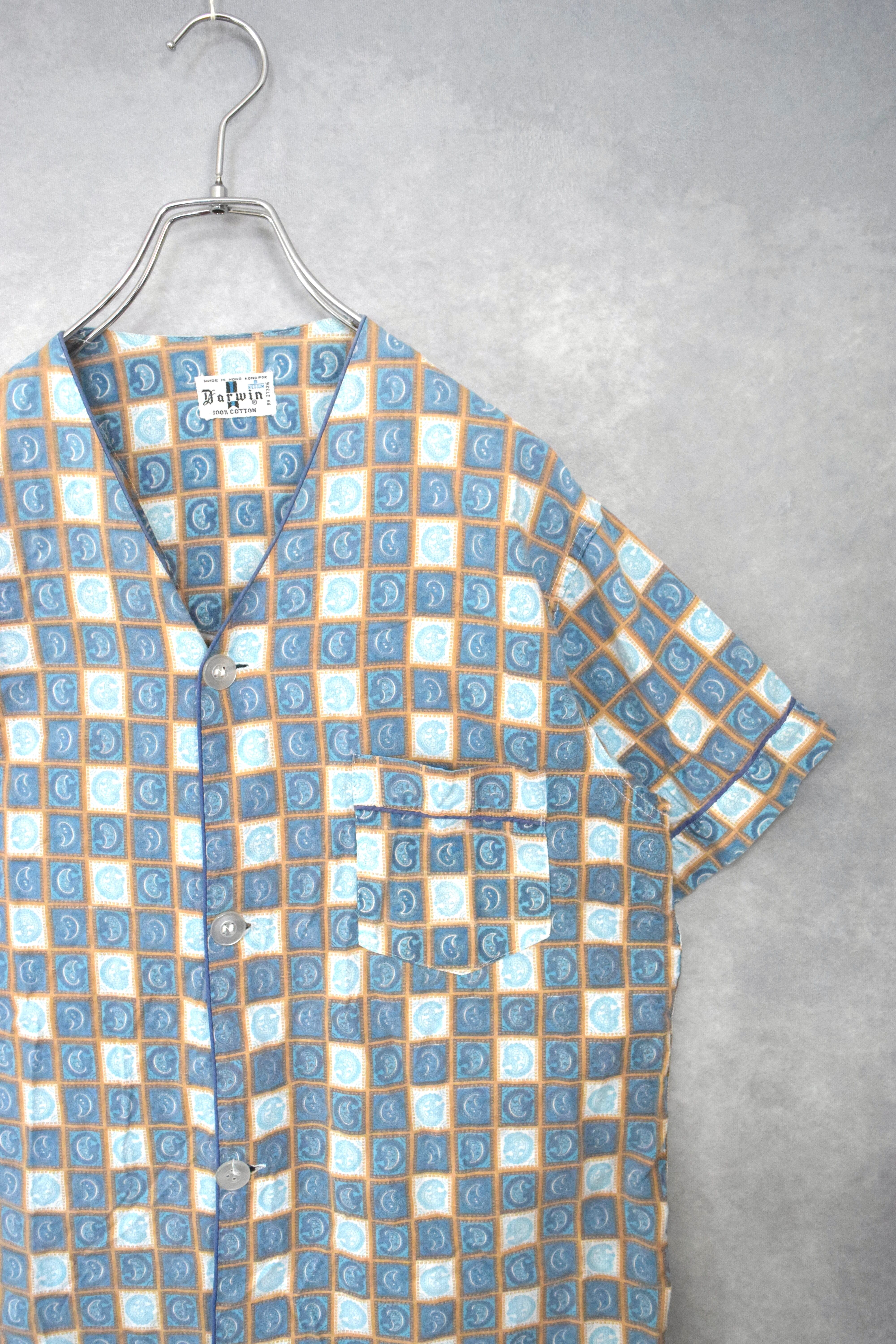 お色味はオレンジ、ブラウンの格子の中にブルー系のペイズリーのような柄の入った総柄。