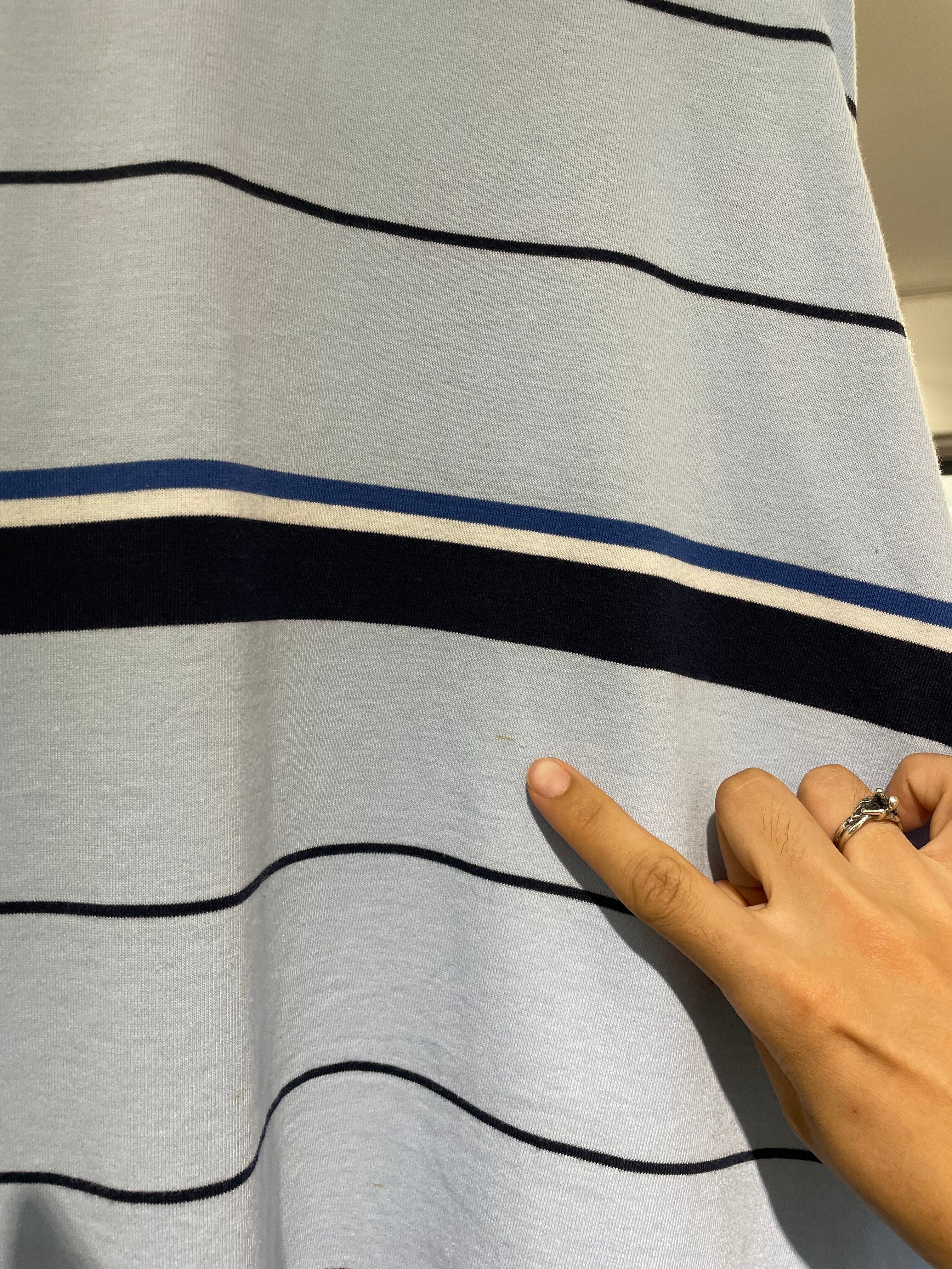 主体であるサックスブルーの明るさを守ったままボーダーのナイスアクセント。