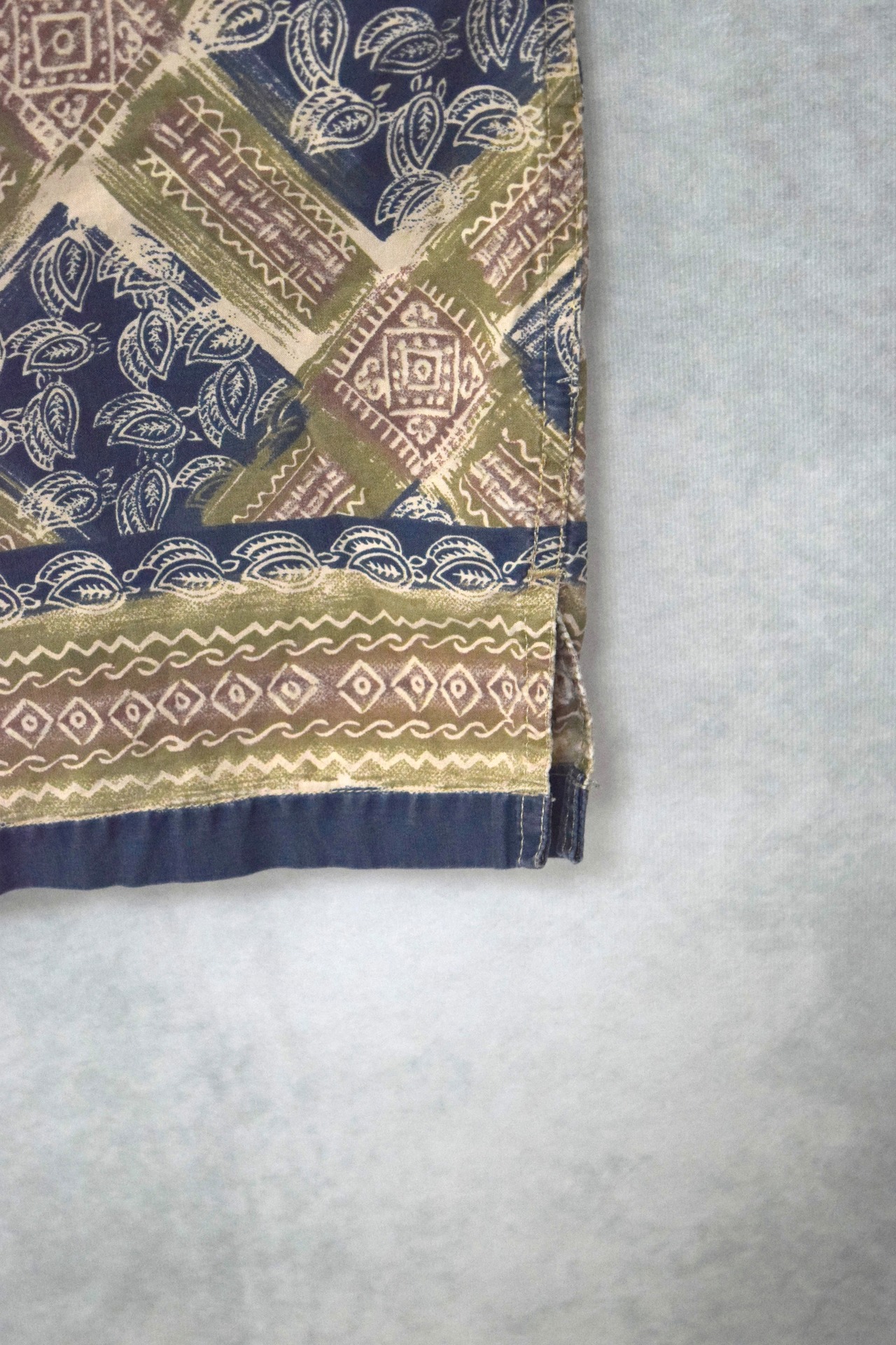 アースカラーにネイビーといったどこか和を感じるバティック柄。
