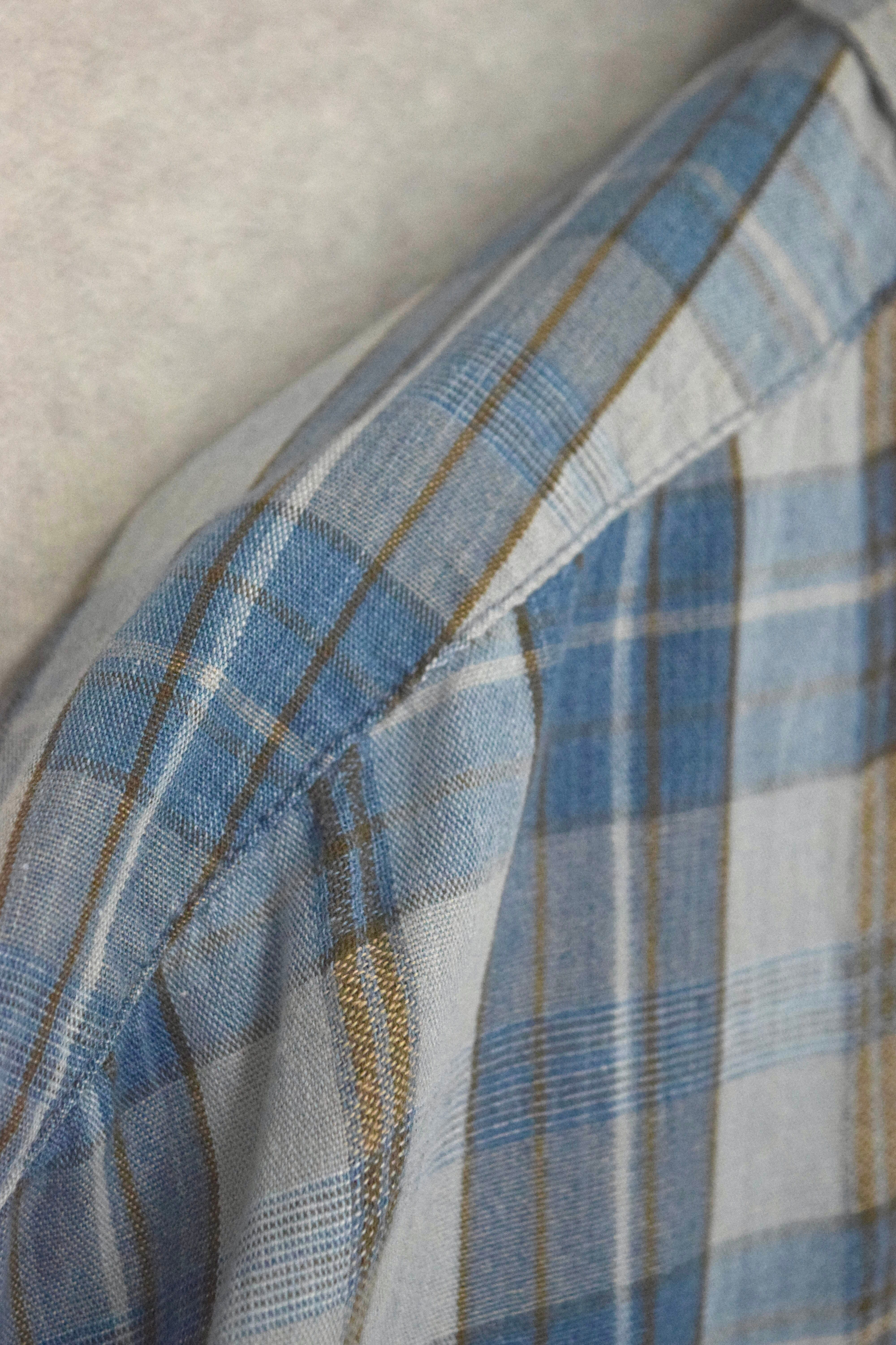 インディゴ染めされたコットン生地を使用したシャツ。