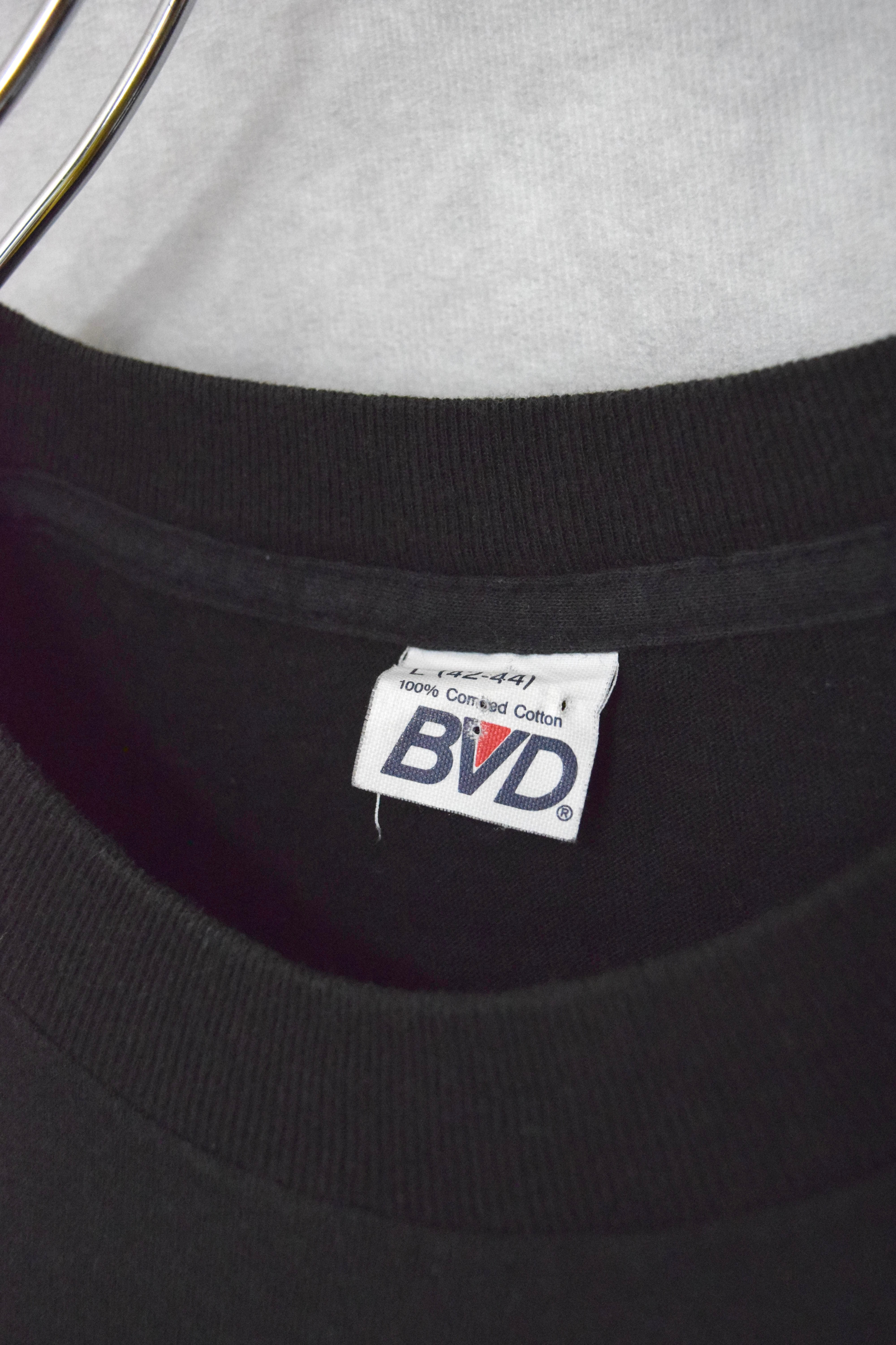 80s " BVD " black combed cotton pocket t-shirts / made in usa / size L