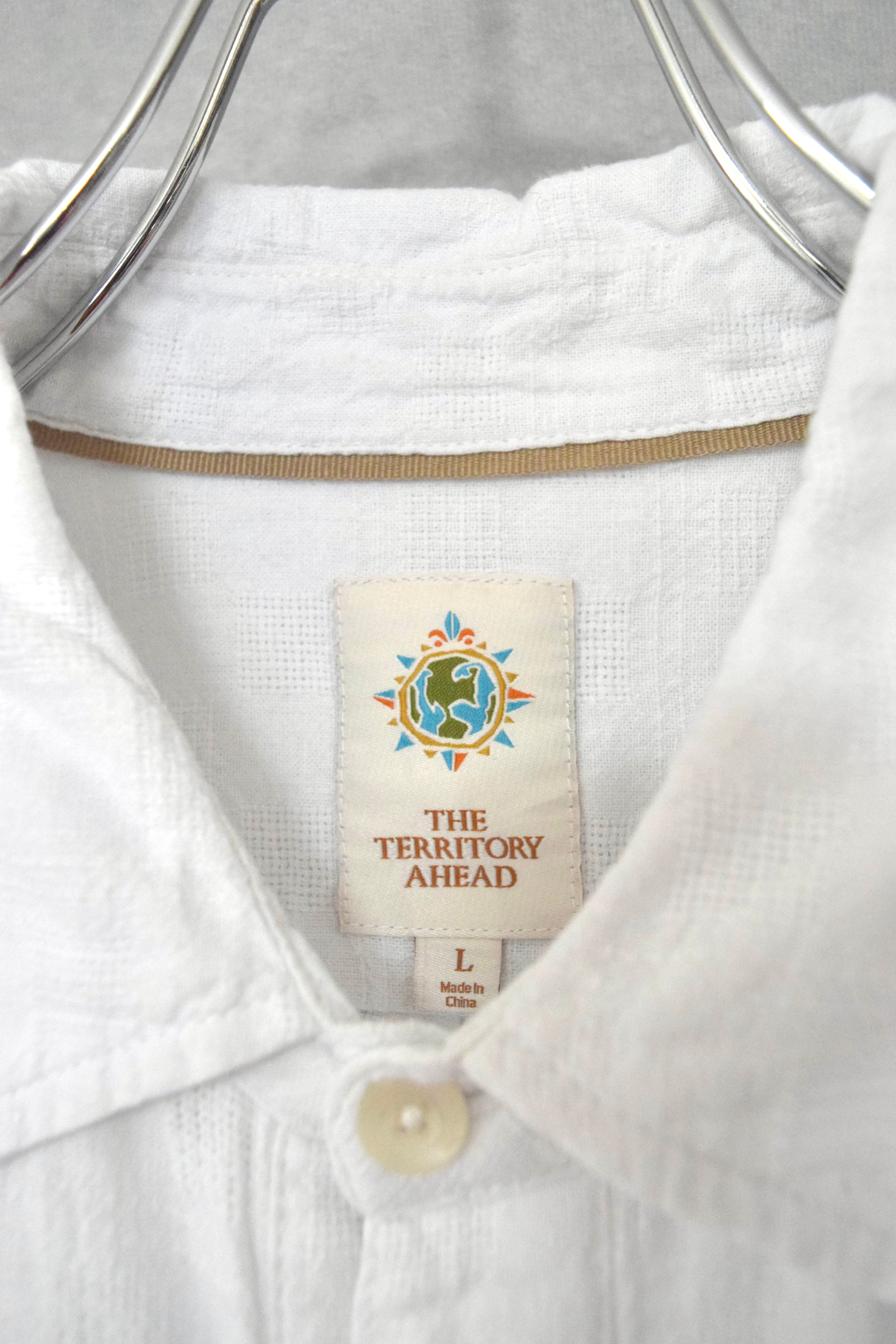 00s " the territory ahead " white linen x cotton pull over shirt / size L