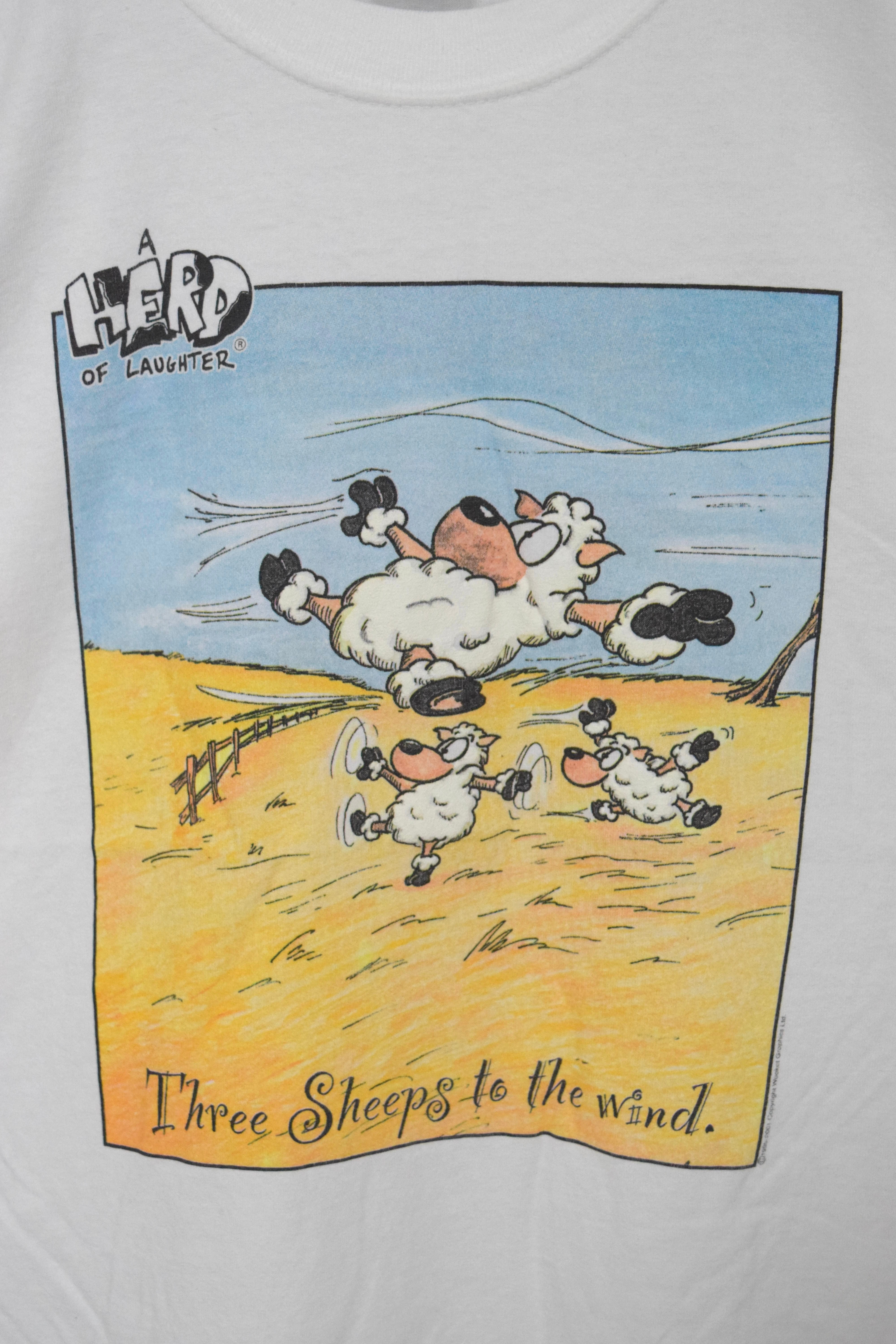 プリント下部には「three sheeps to the wind」のメッセージ。