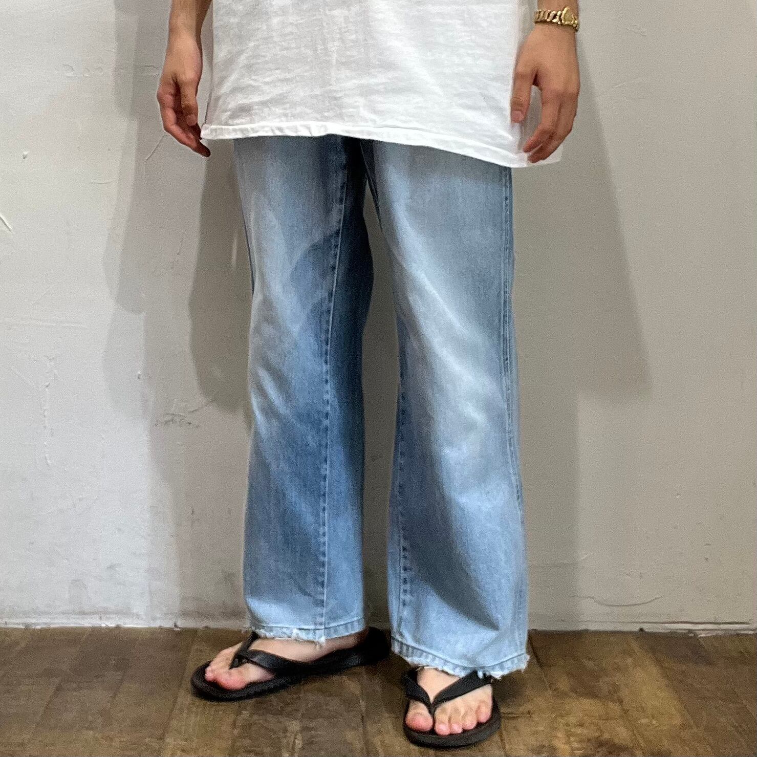 フロントポケットフチ、タック、バックポケット付近、両裾にスレ、ほつれがございますがどれもデニムならではの雰囲気として受け取って頂けるかと。