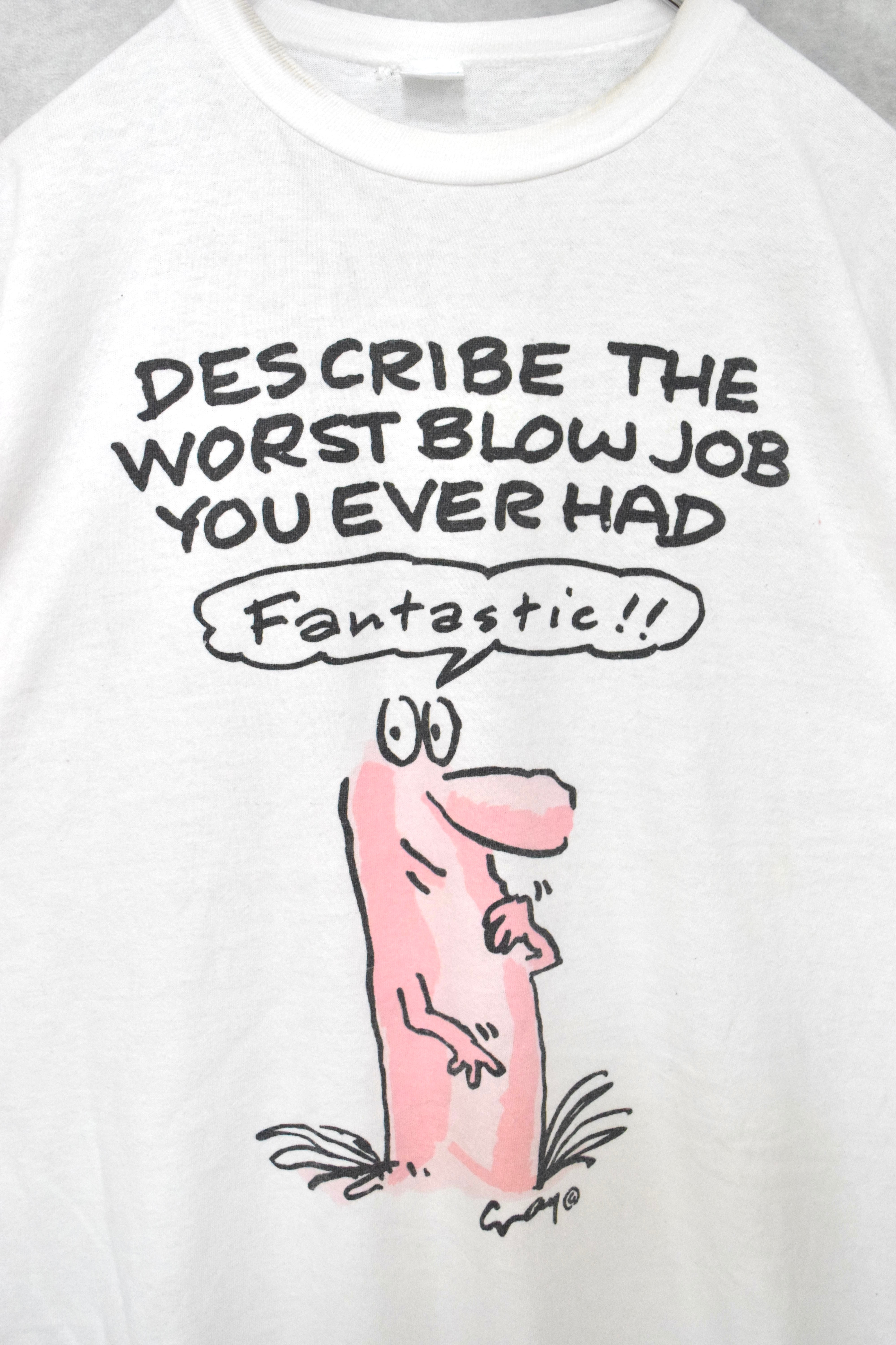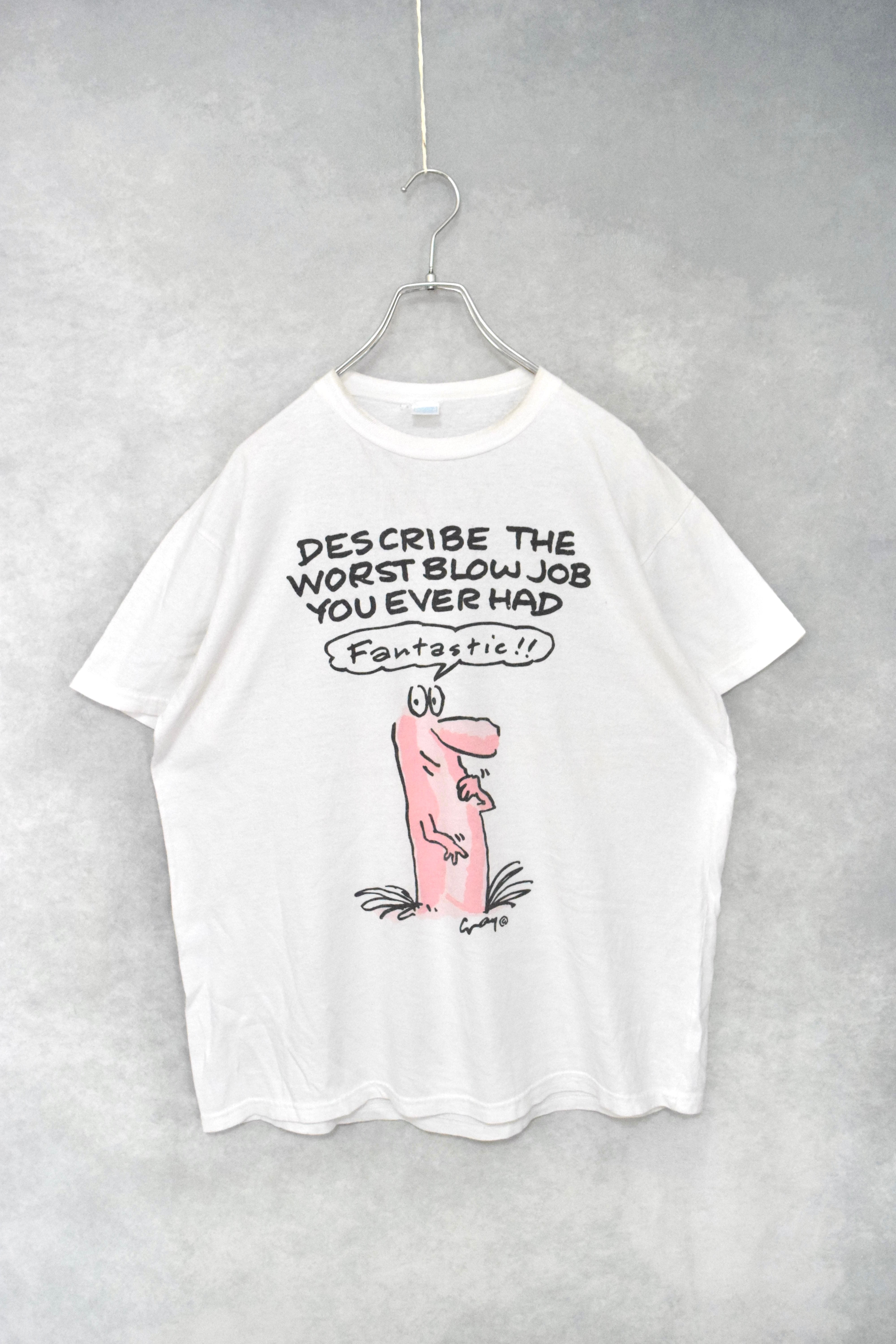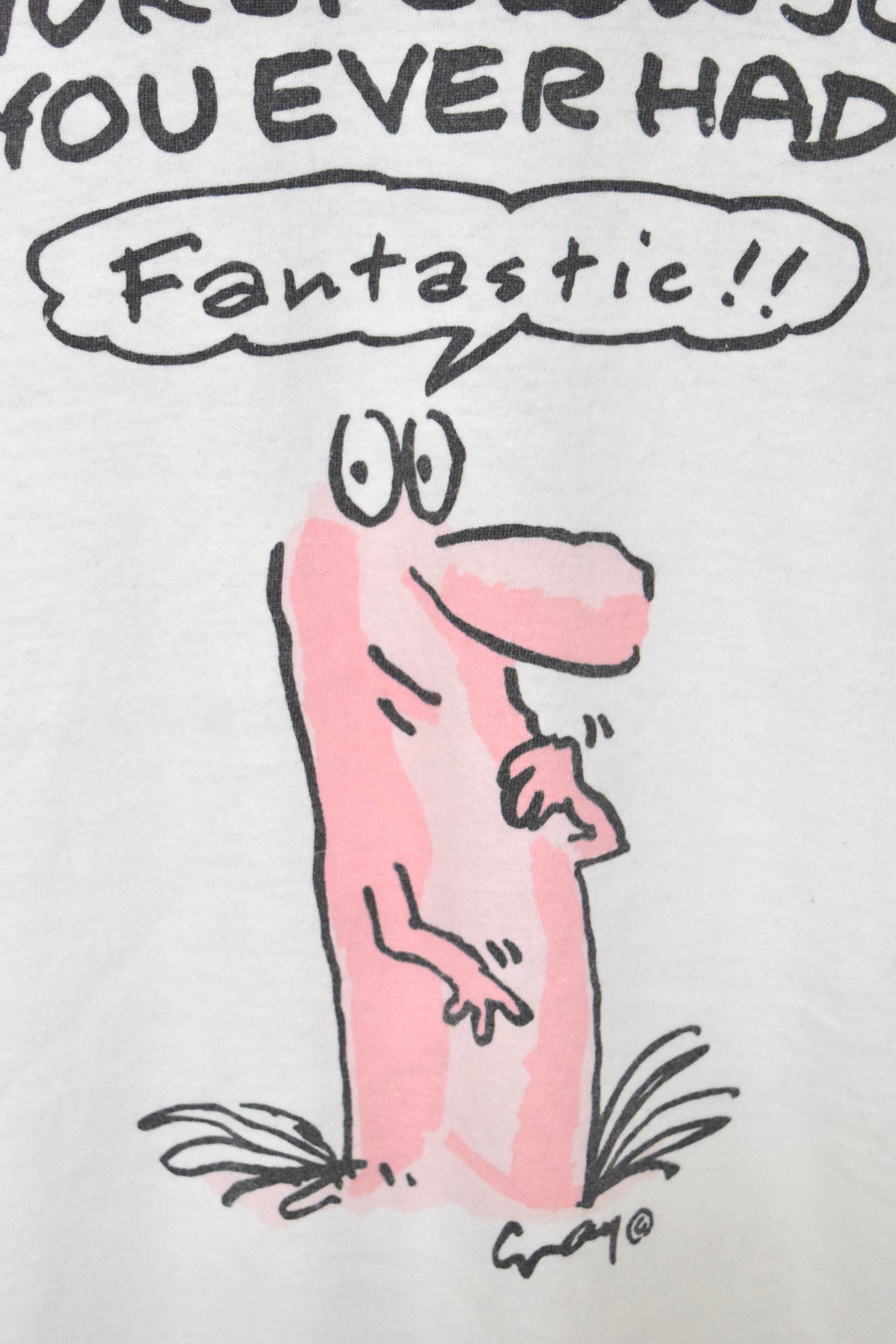 こういったふざけたプリントTの上にネイビーブレザーとか真面目な服を是非合わせて欲しいです。