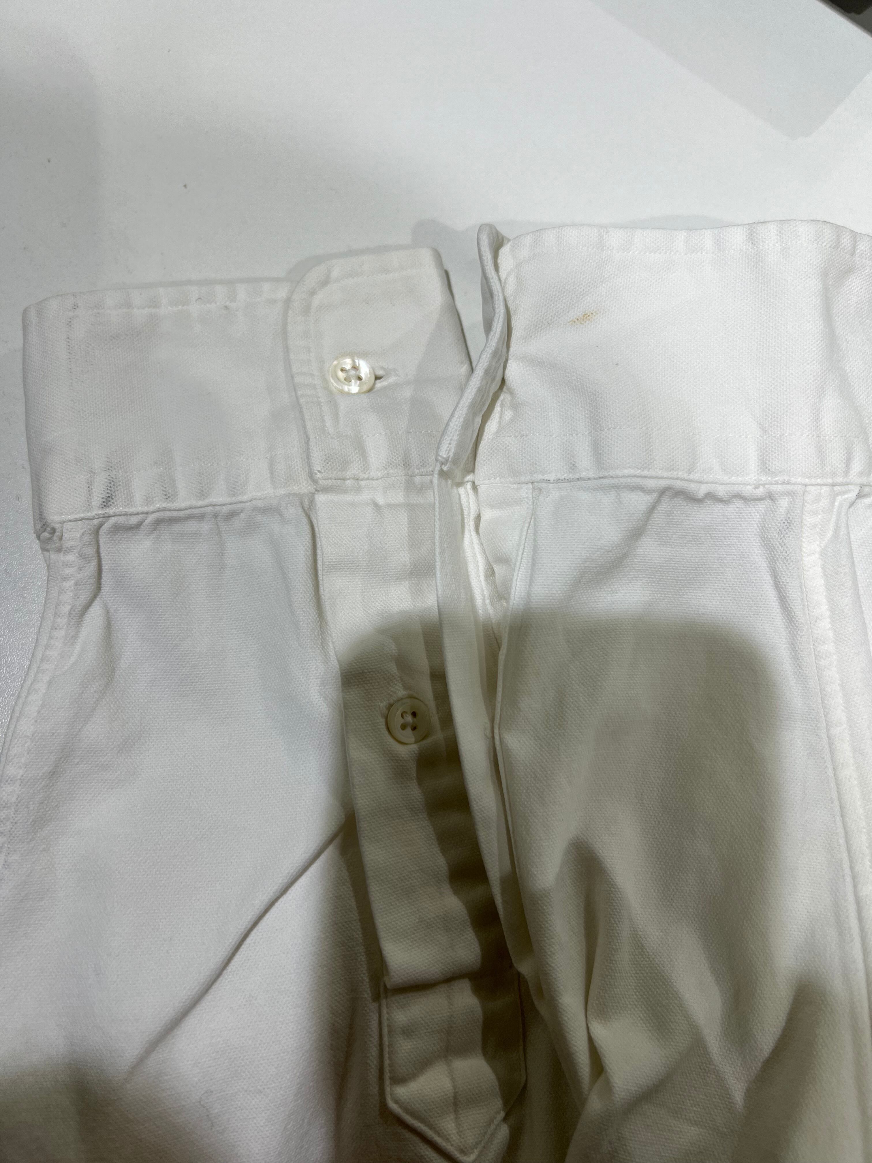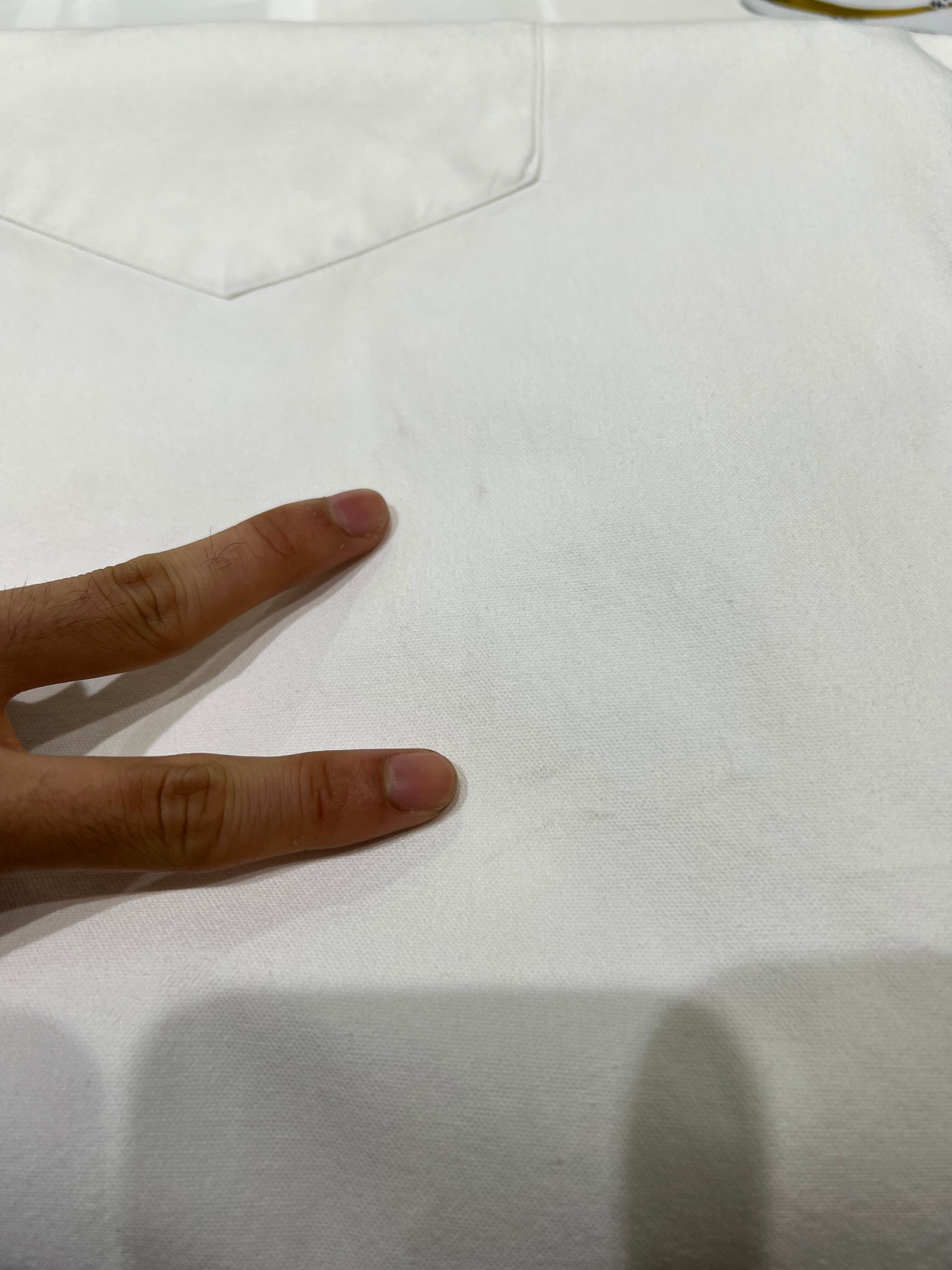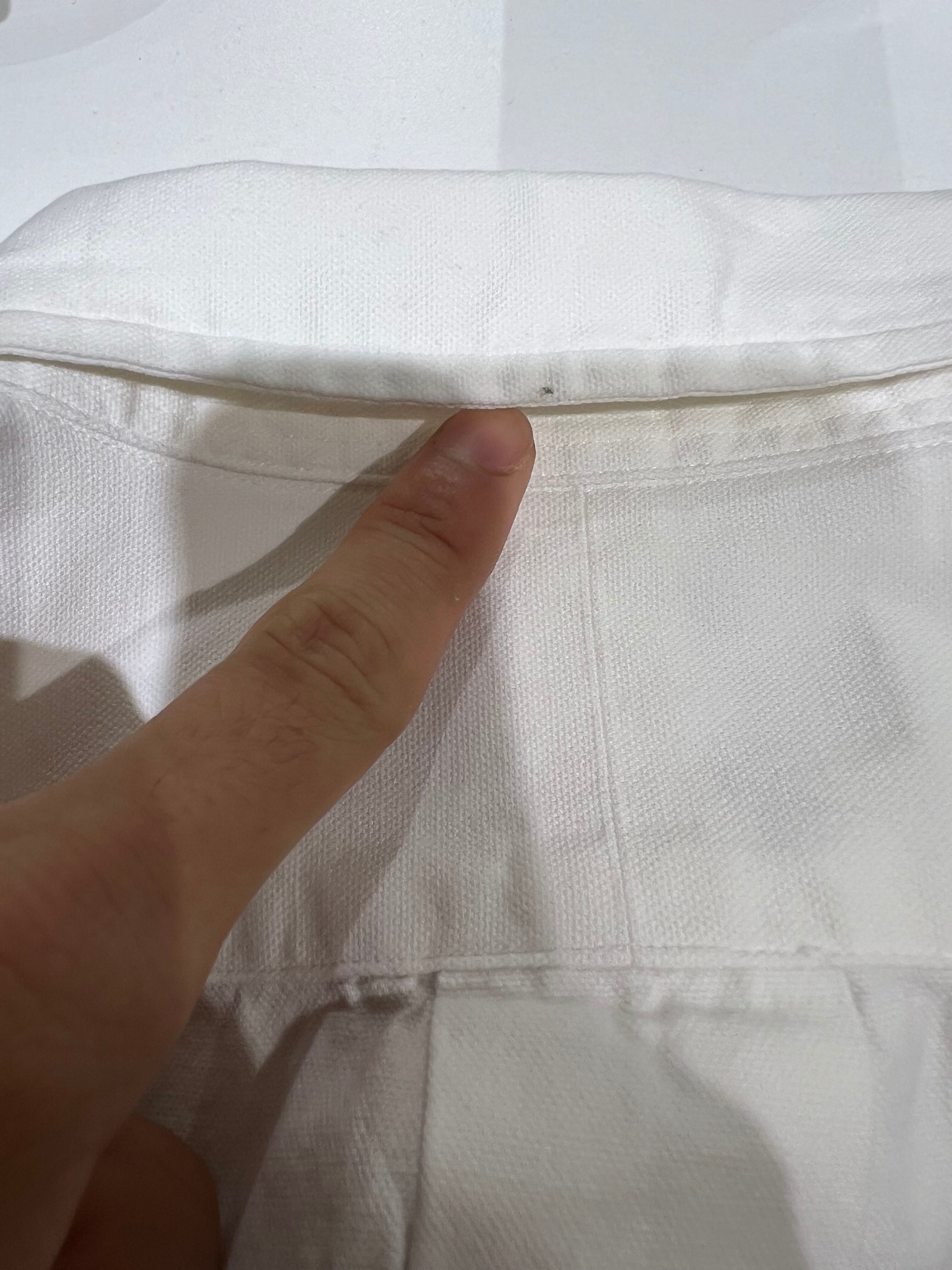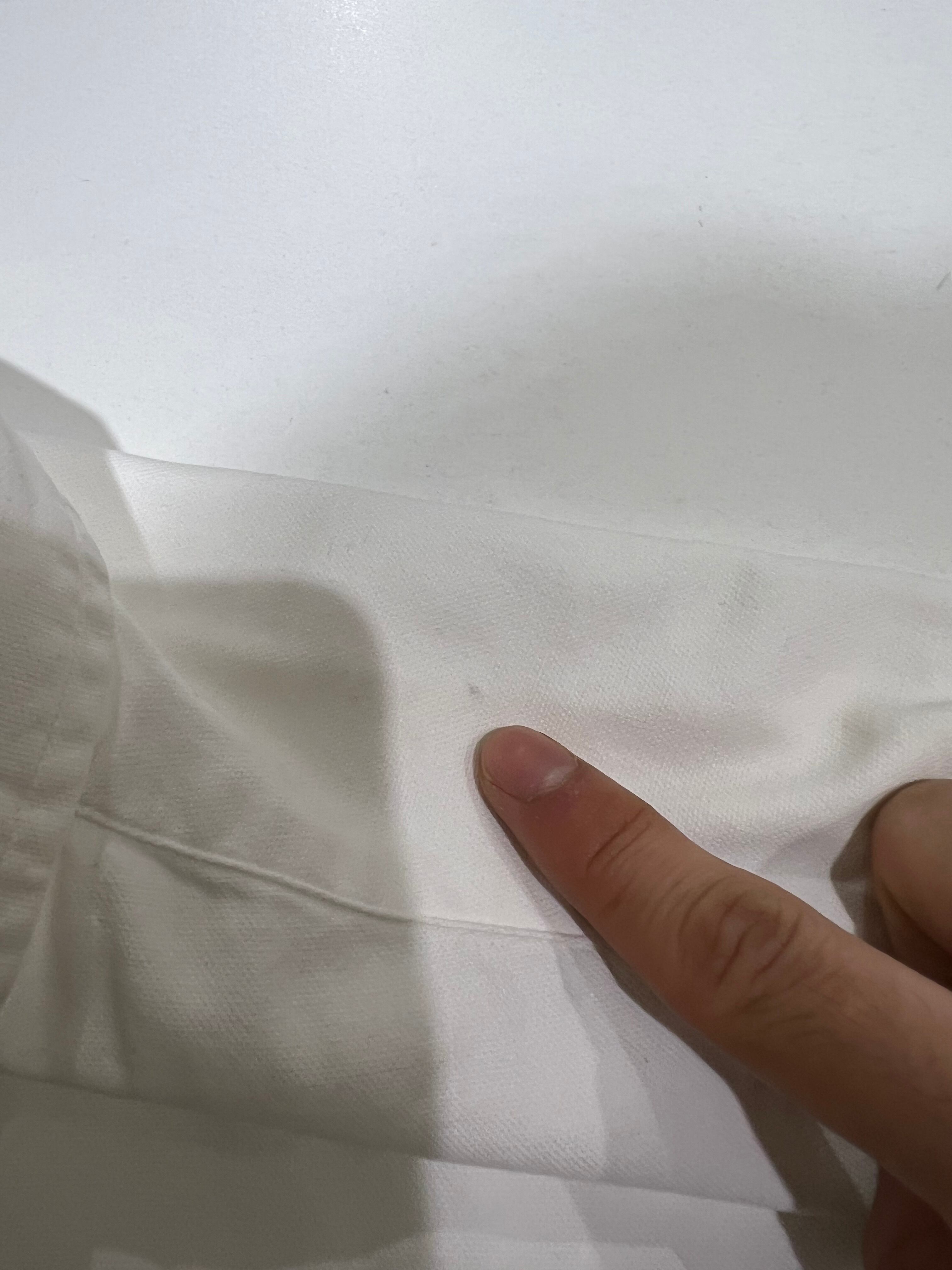 両肩、胸ポケット下、右腹部辺り、両袖先、首裏襟、後ろ裾に軽い汚れがありますがご着用には問題ありません。