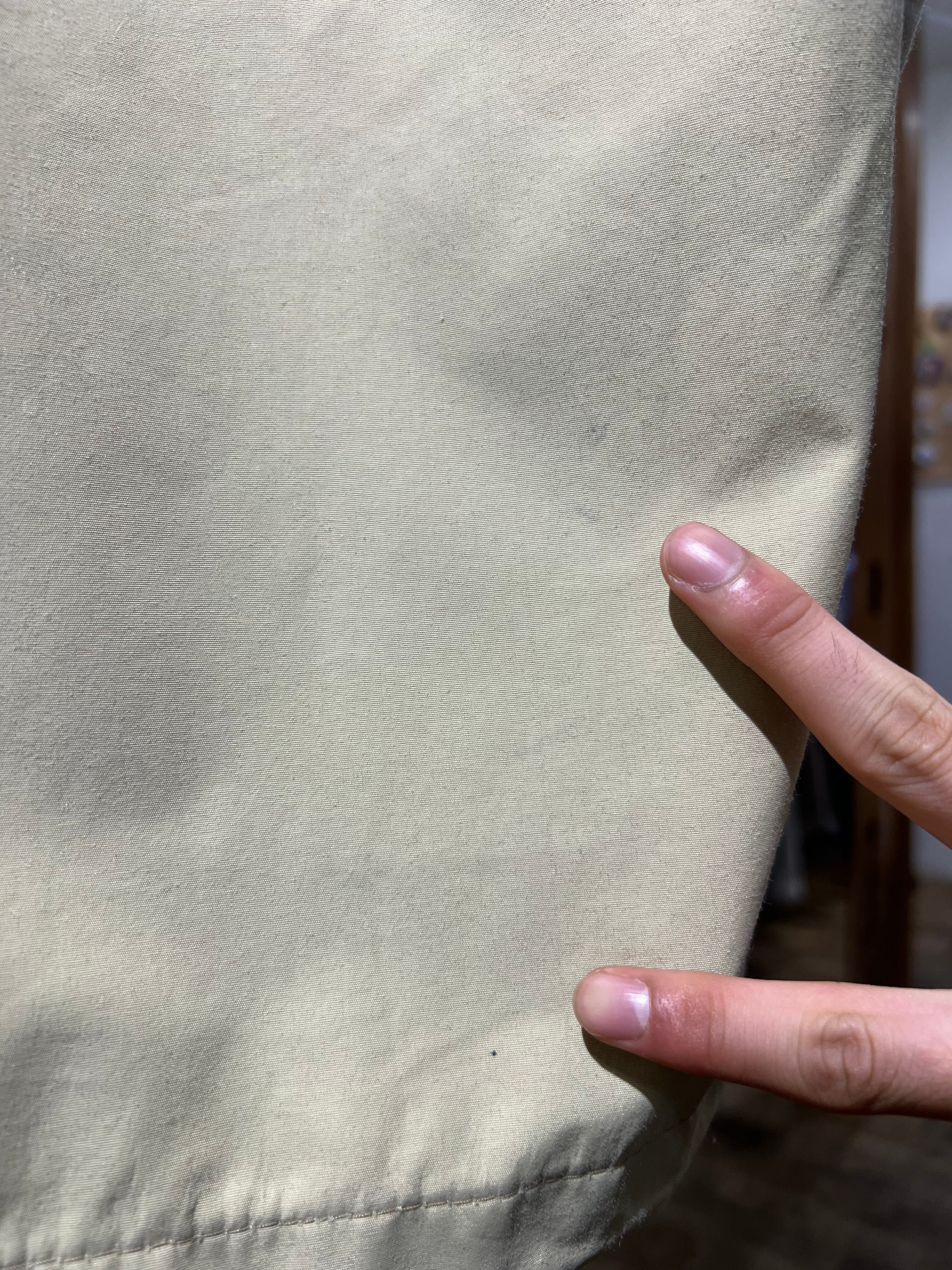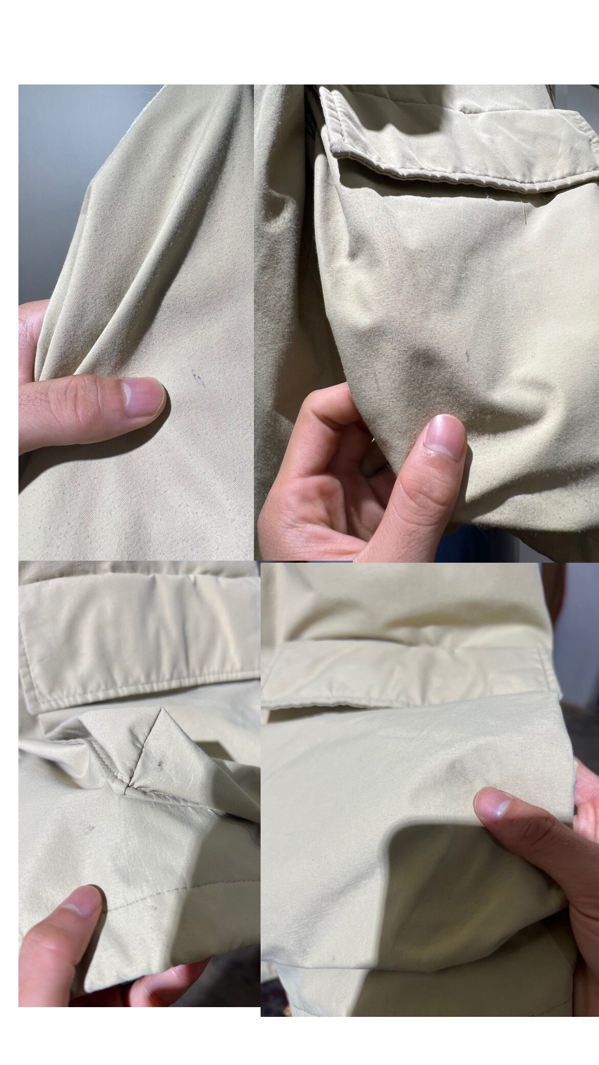 フロントライン、左ポケット付近、右袖、背中、裾に薄汚れがあります。