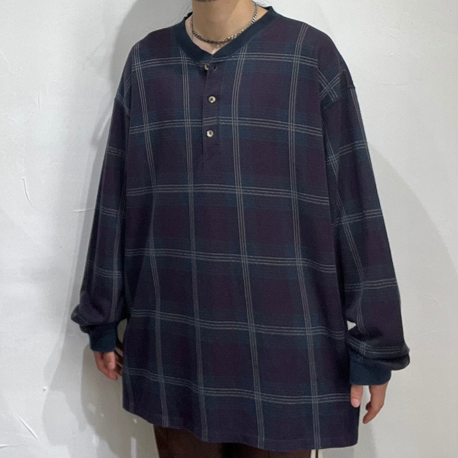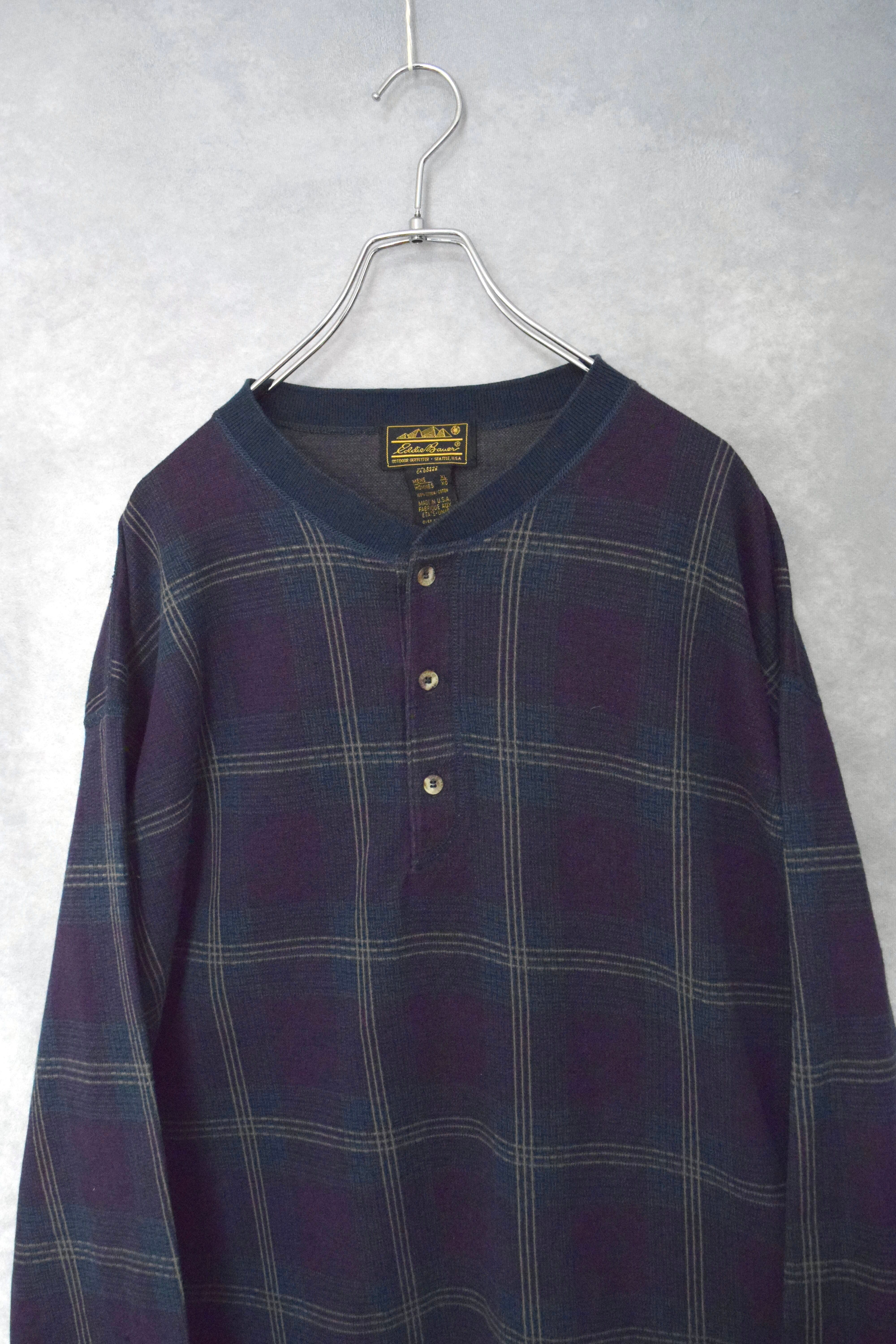 80年代頃の黒タグのつくエディバウアーのヘンリーネックコットンカットソー。