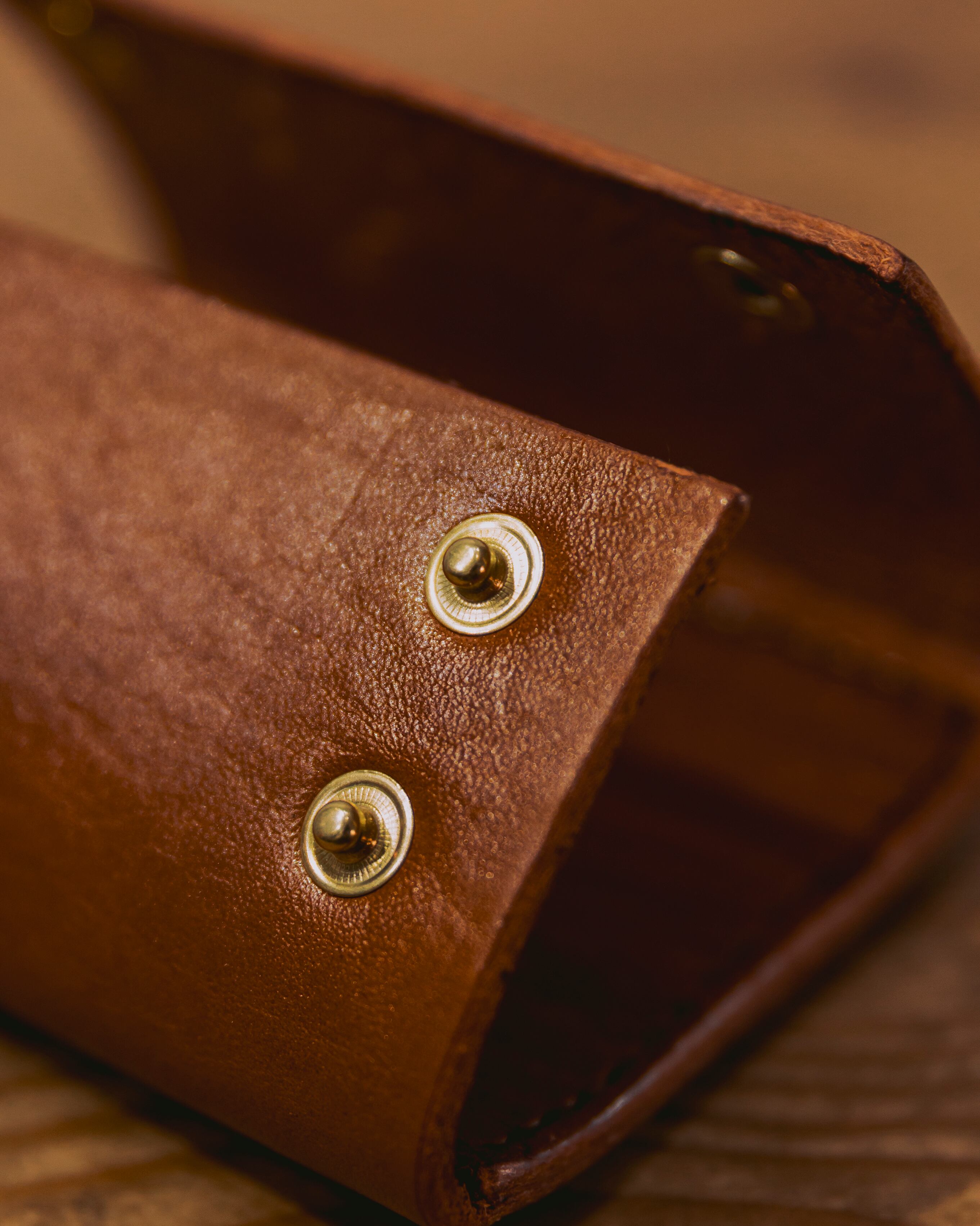 厚みのあるヌメ革(栃木レザー)を使用しておりここから使い込むごとに柔らかく、アジがマシていくのが楽しみな1品です。