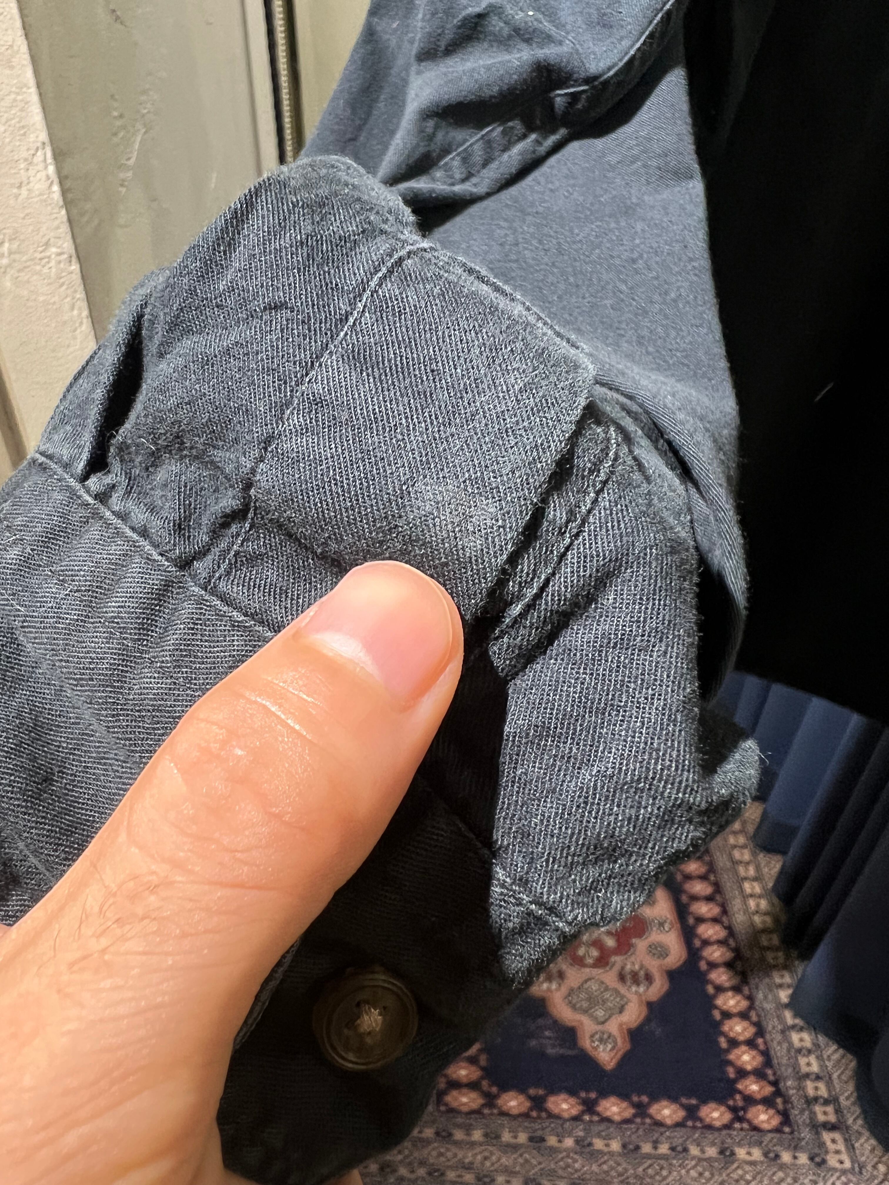 右袖先に小さなテープが貼られていたような跡があります。