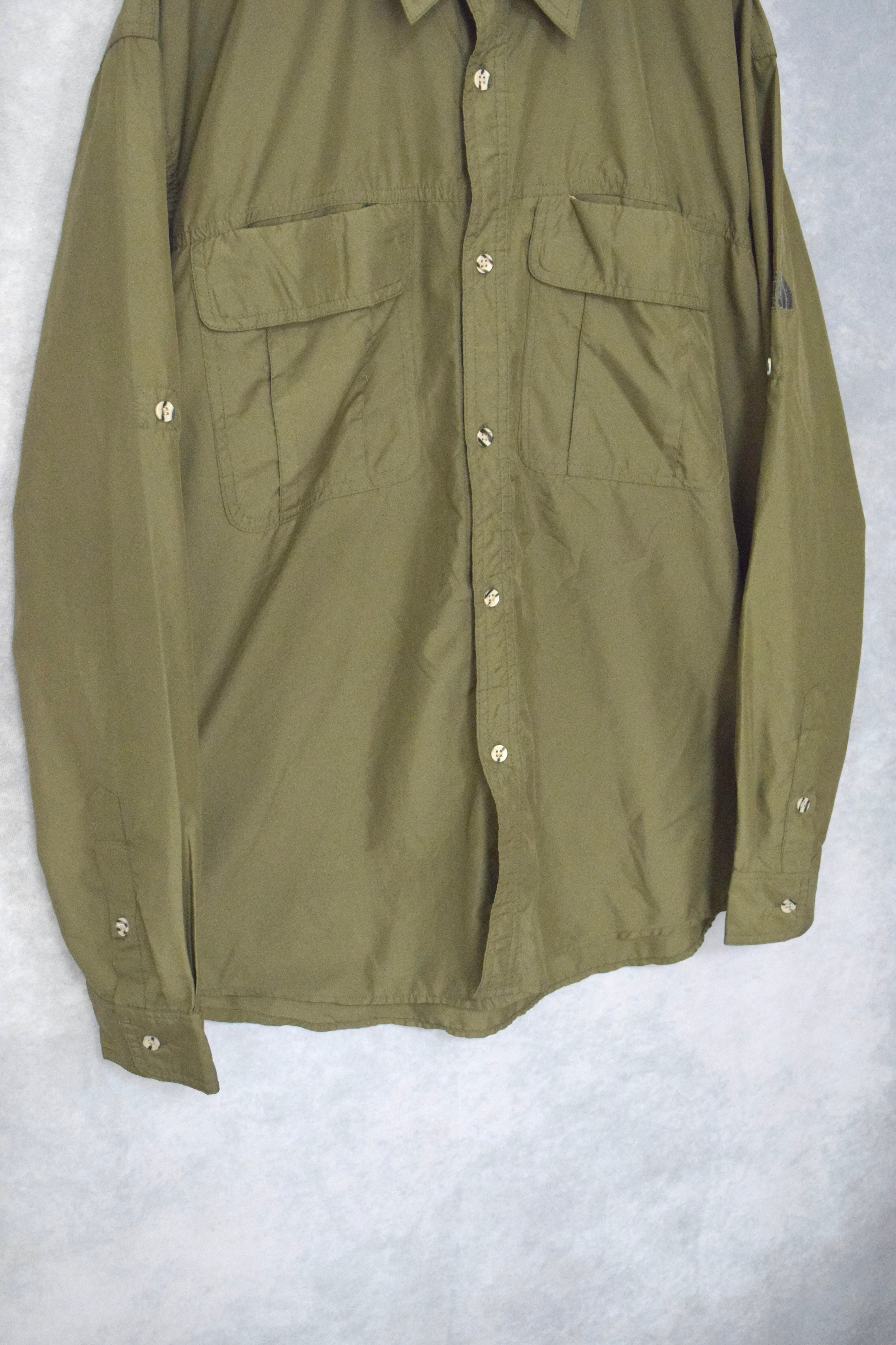 なんだかノースフェイスというよりかはエディーバウアーあたりのブランドぽさがありますが、左袖にしっかりロゴが入ります。