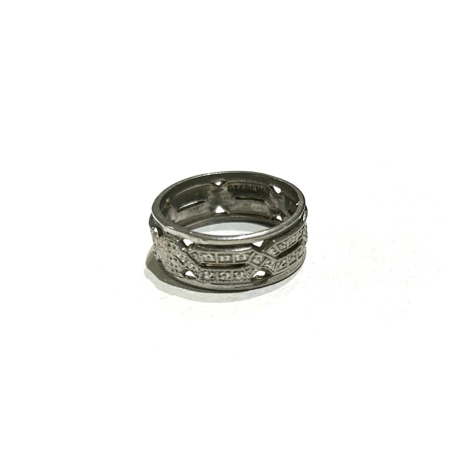 2つのラインが螺旋状に重なり合っているようなデザイン。