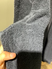 両袖付け根付近のパイルに抜けがありますが着用時には見えにくいです。