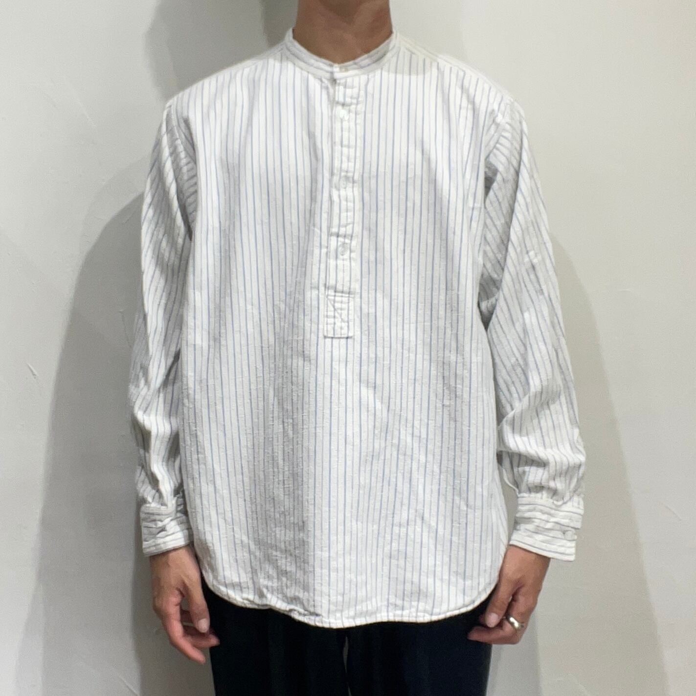 ストライプコットンフランネルスタンドカラープルオーバーシャツ。