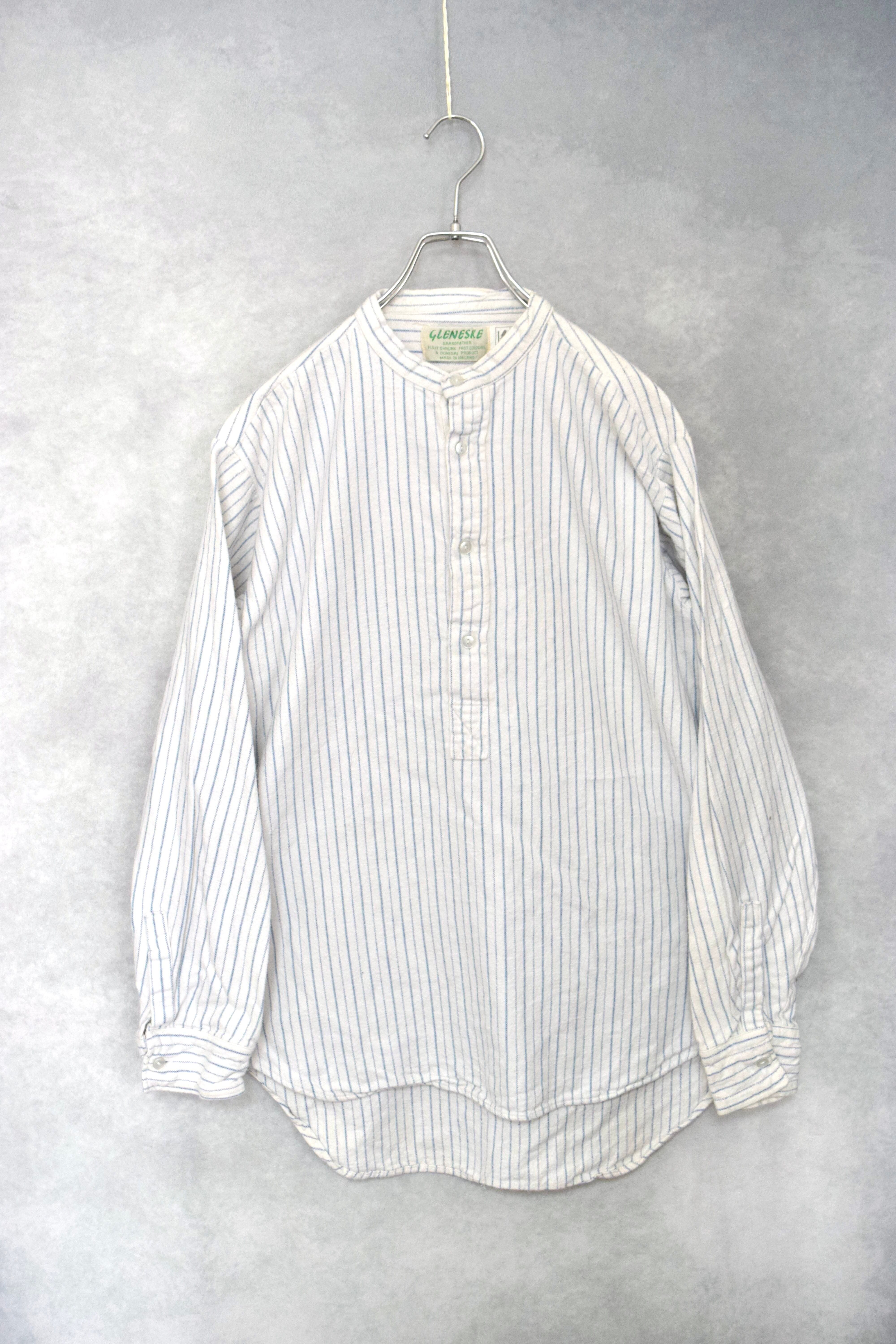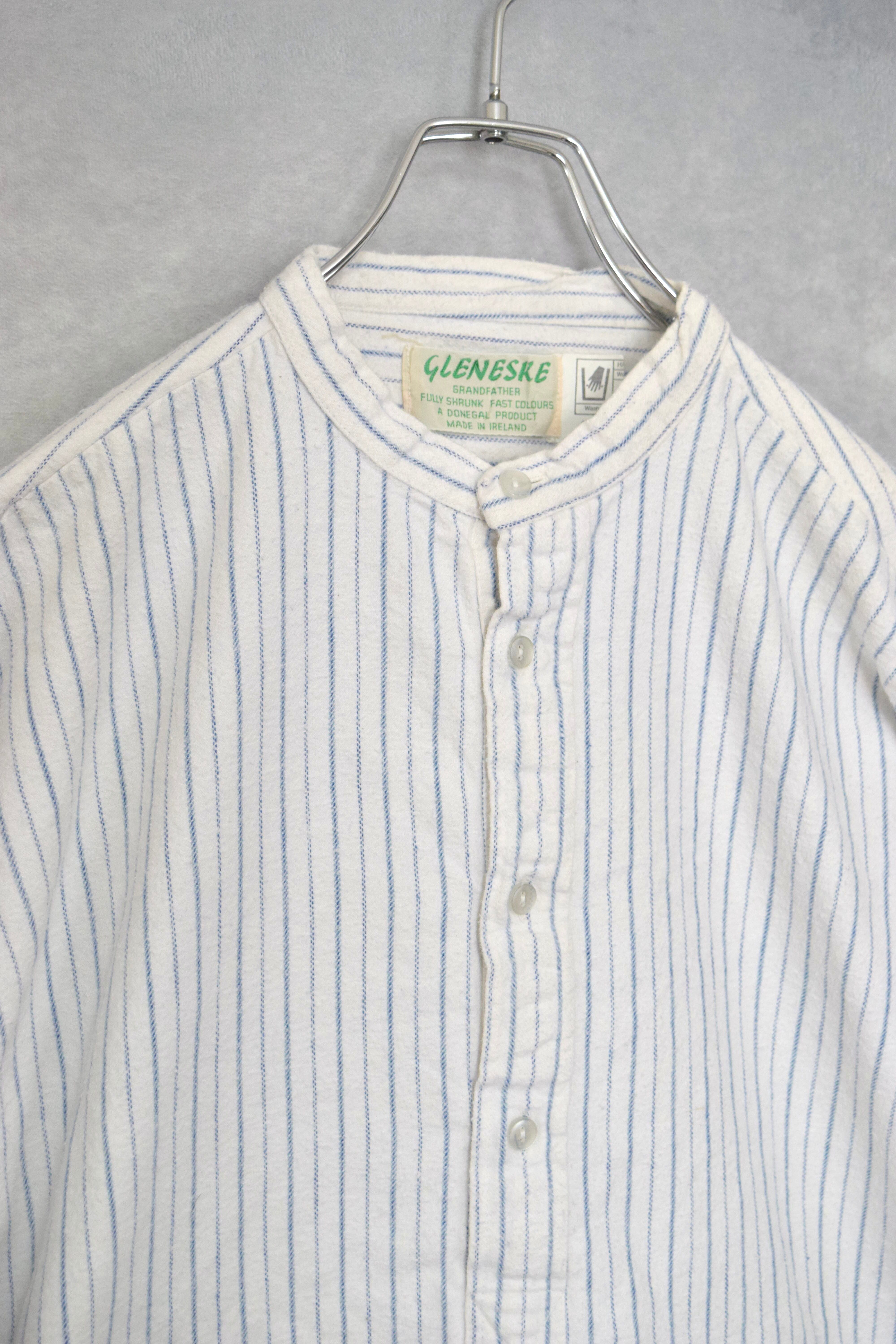 90s stripe cotton flannel stand collar pull over shirt / made in ireland / size L