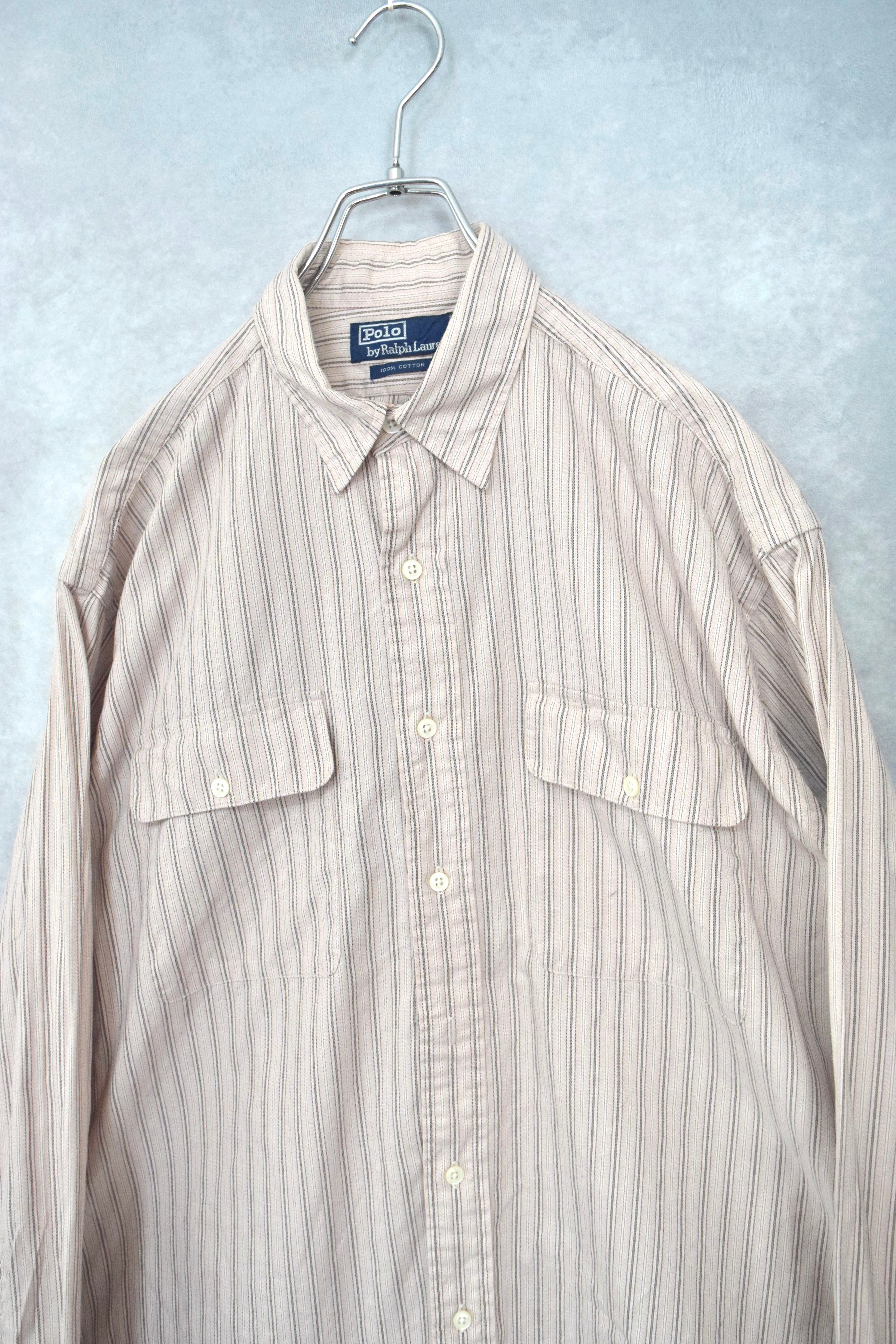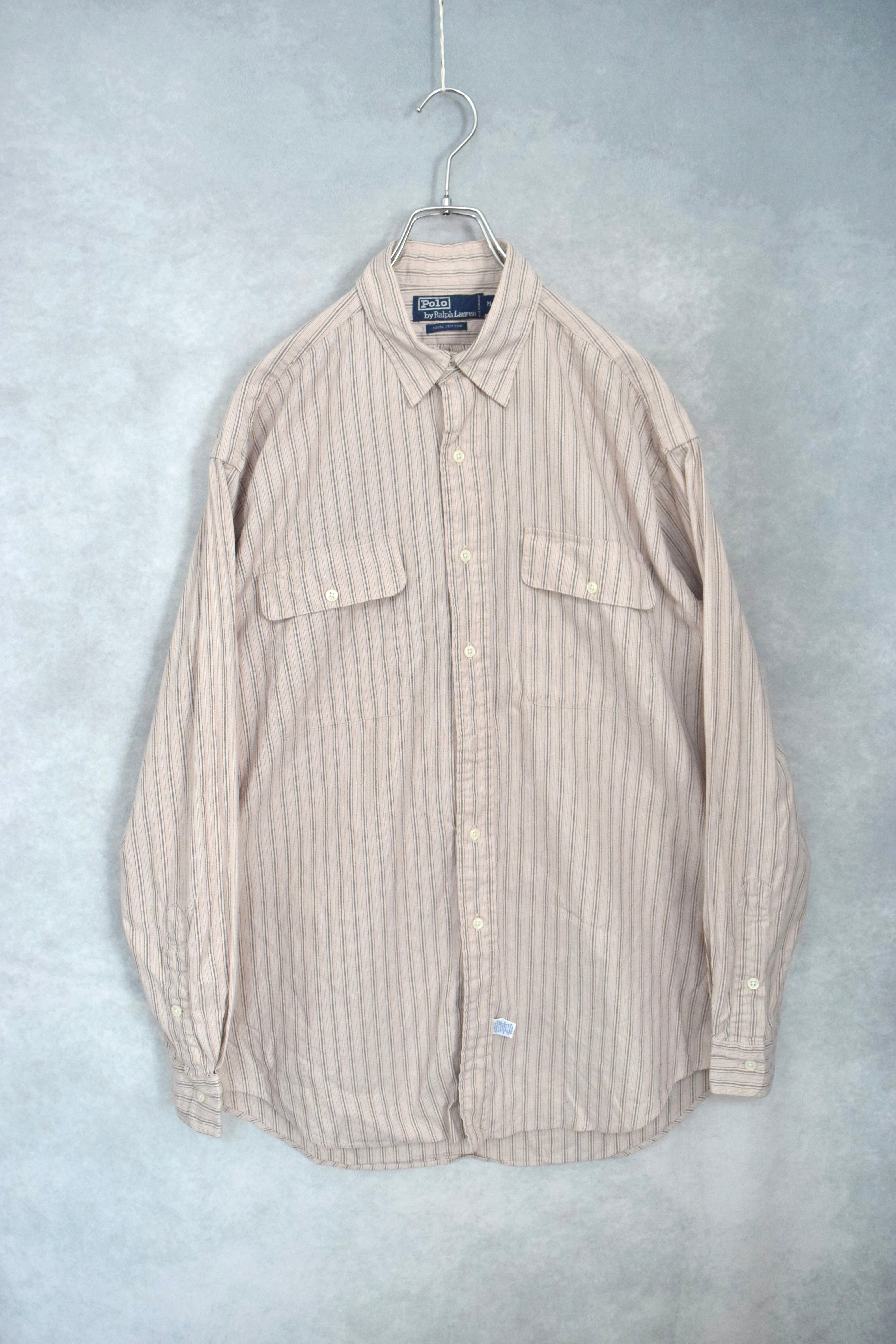 90s " polo ralph lauren " stripe pattern cotton shirt / size m
