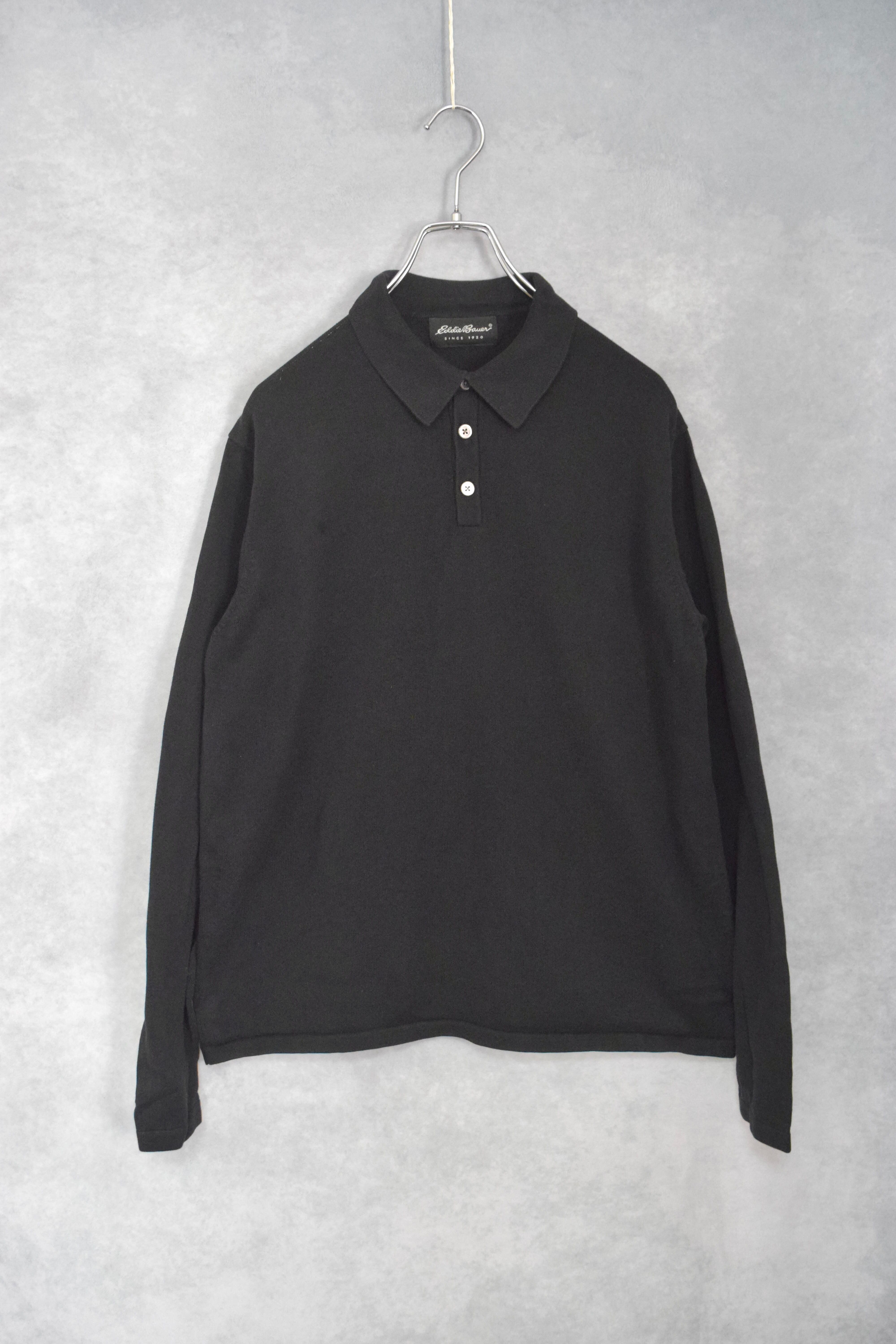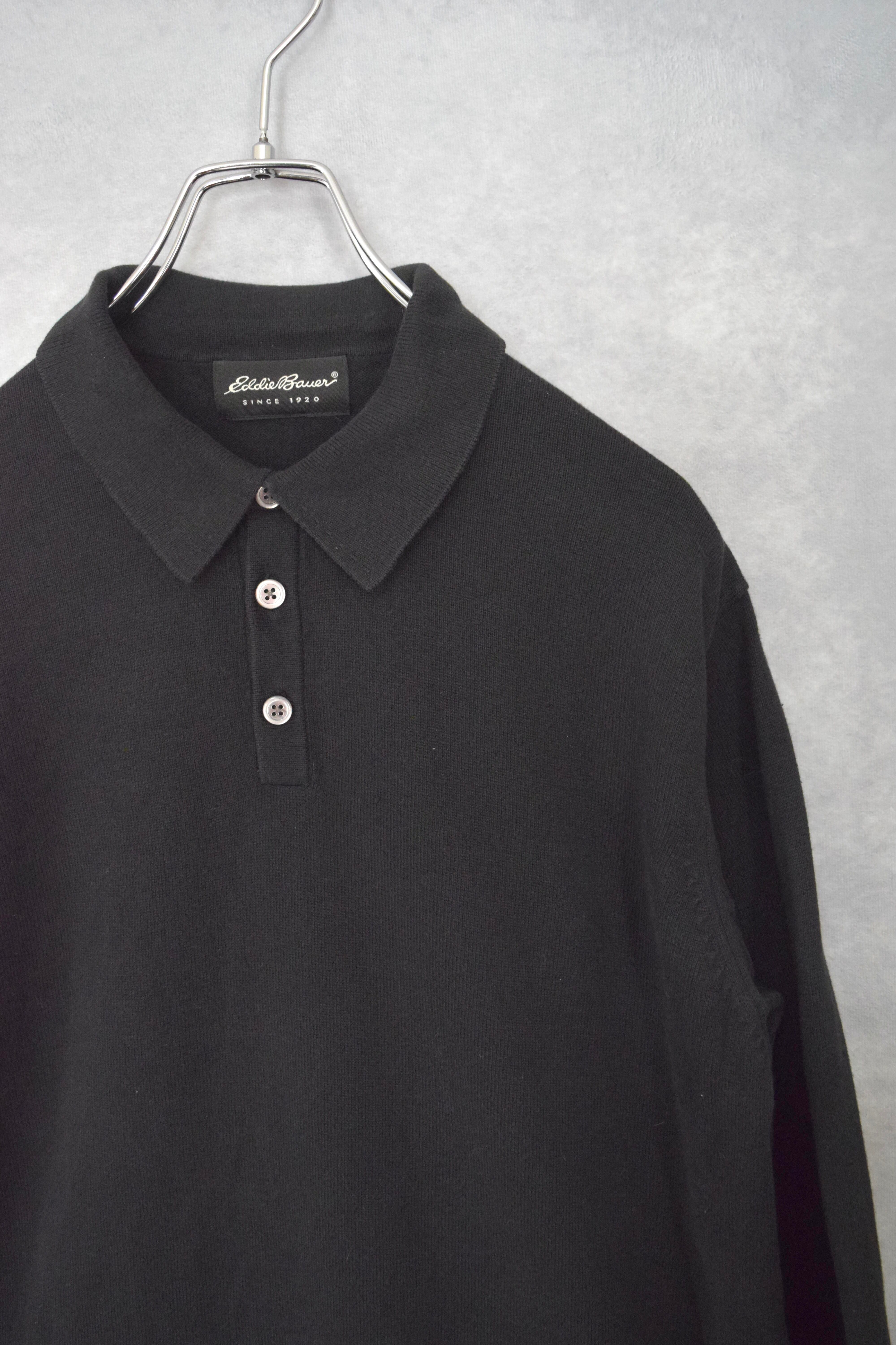 90年代頃のエディバウアーのブラックコットンハイゲージニットポロシャツ。