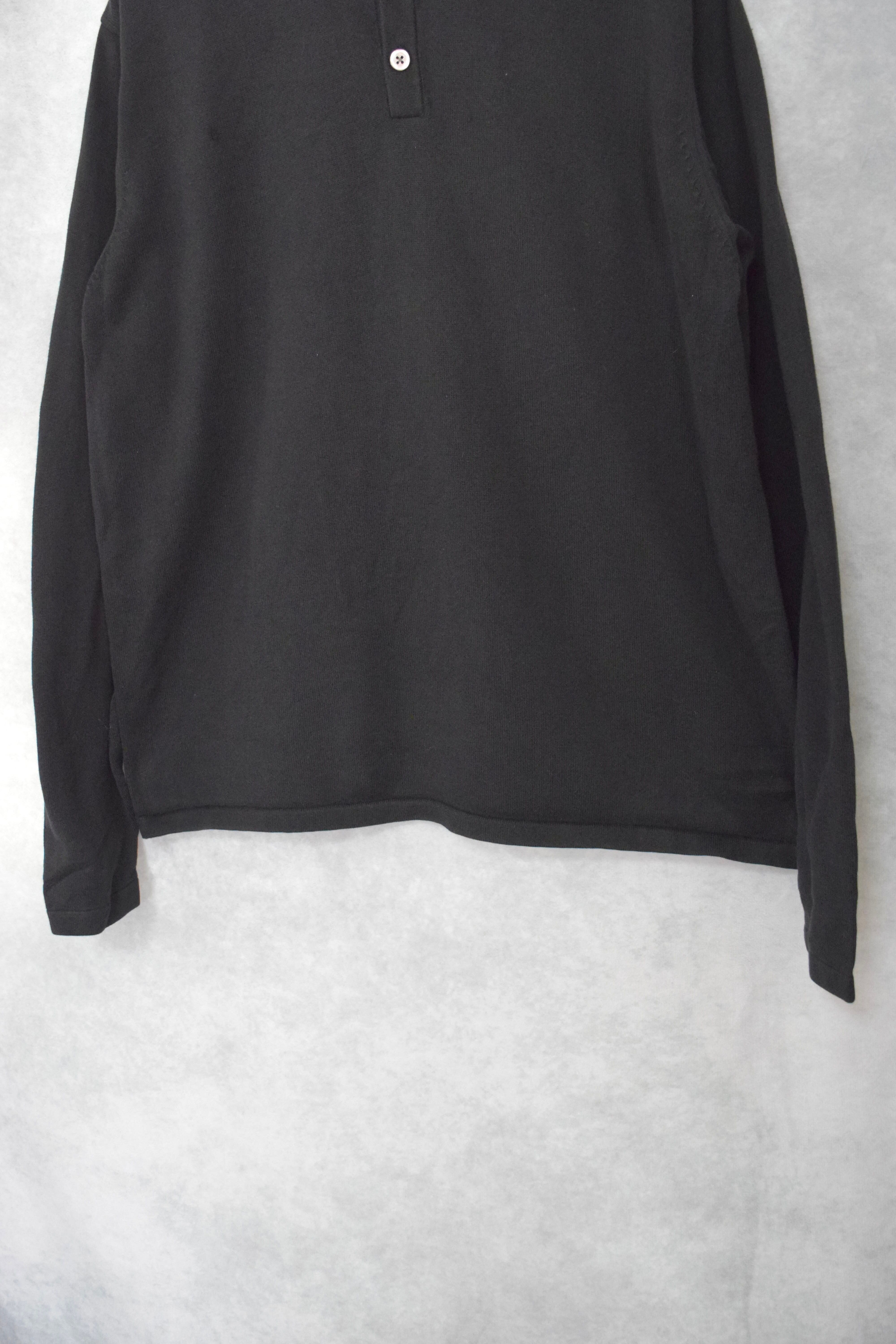 90s " eddie bauer " black cotton hi gauge knit polo shirt / size m